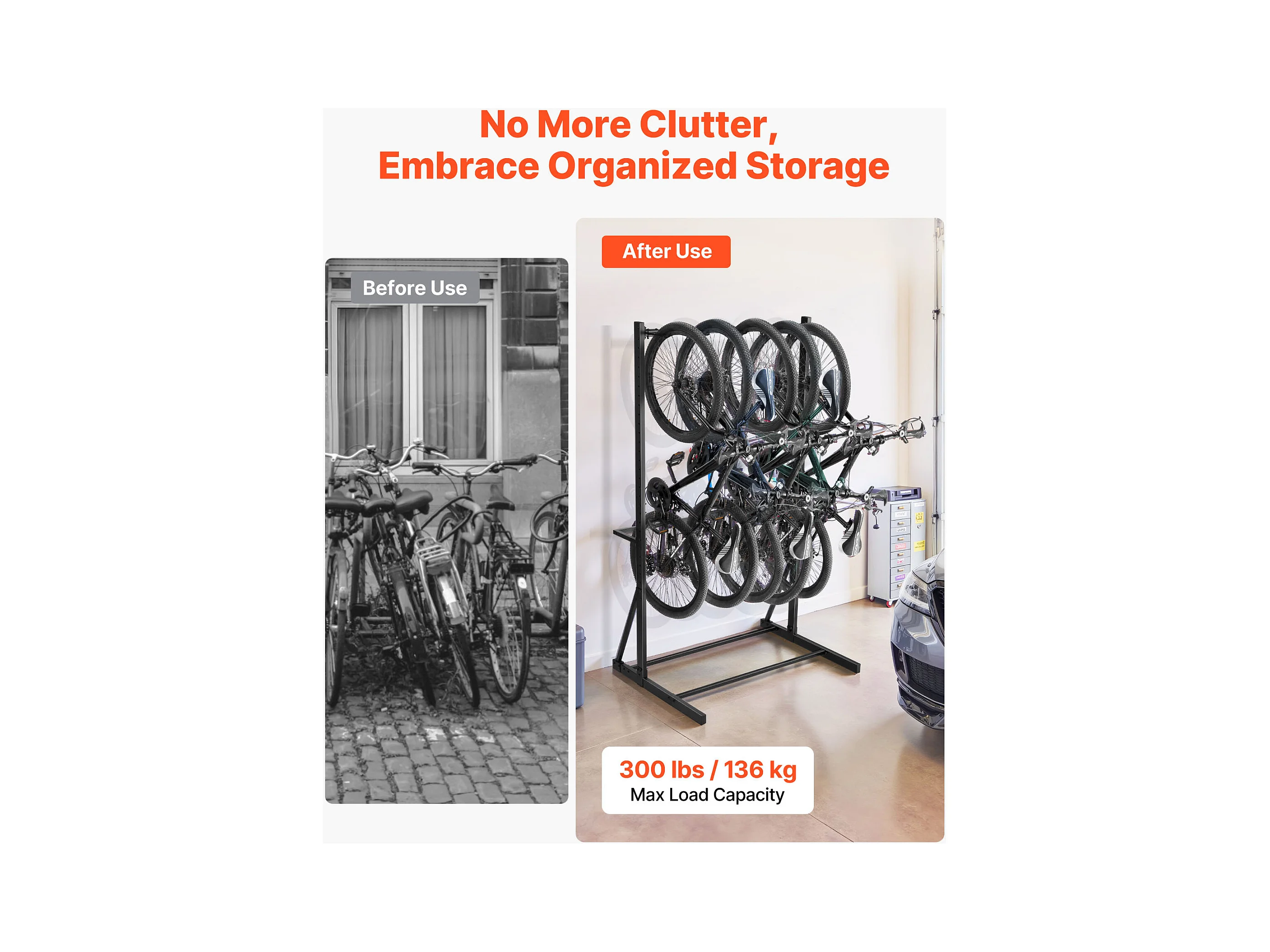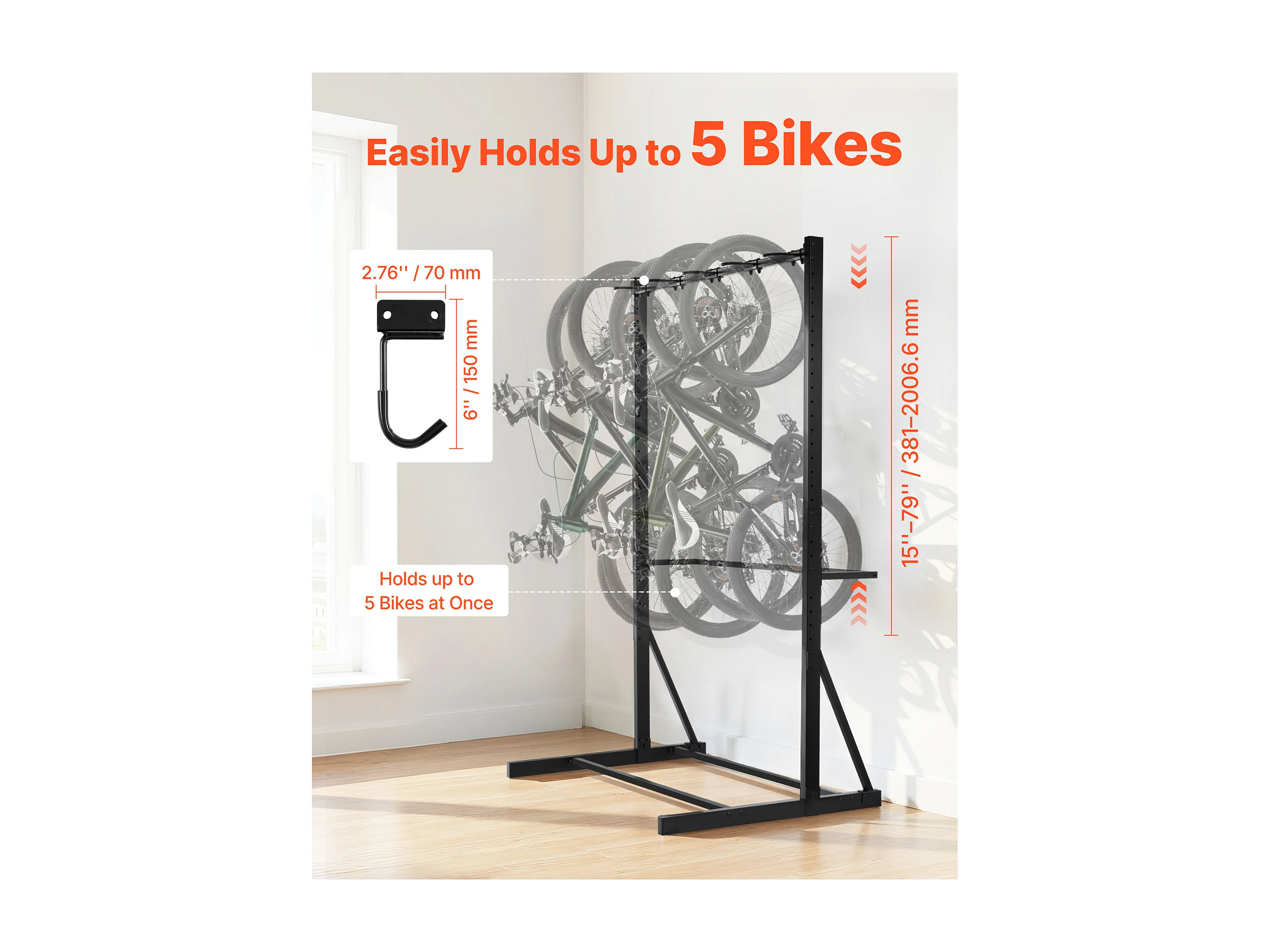 Fietsenstandaard SucceBuy 5 Fietsen Fietsendragers met 5 Robuuste Haken, Fietsopbergstandaard van Koolstofstaal, Verticale Fietsopbergstandaard voor Garage