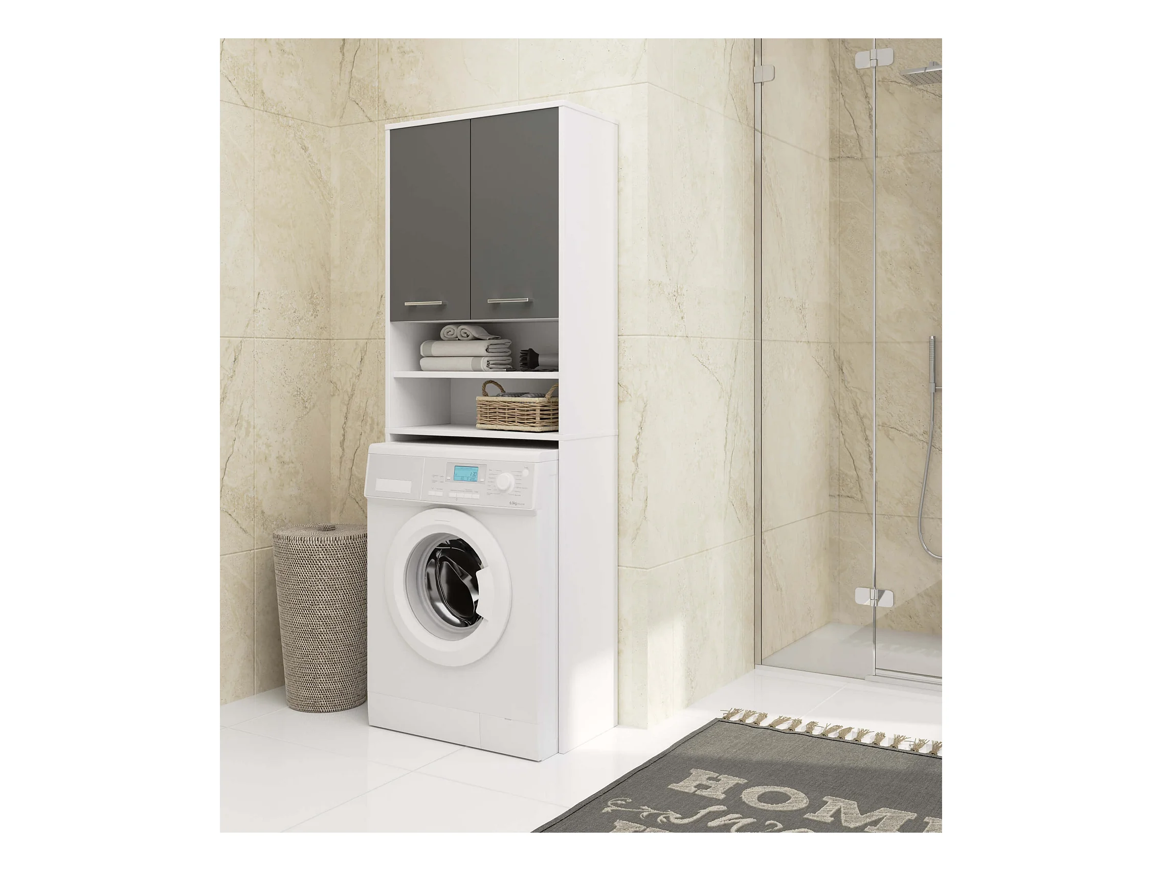 FIN Badkamerkast boven Wasmachine - Wit Grafietgrijs, 2 Deurs, 180x64x30cm, Laminated Board, Zelfmontage
