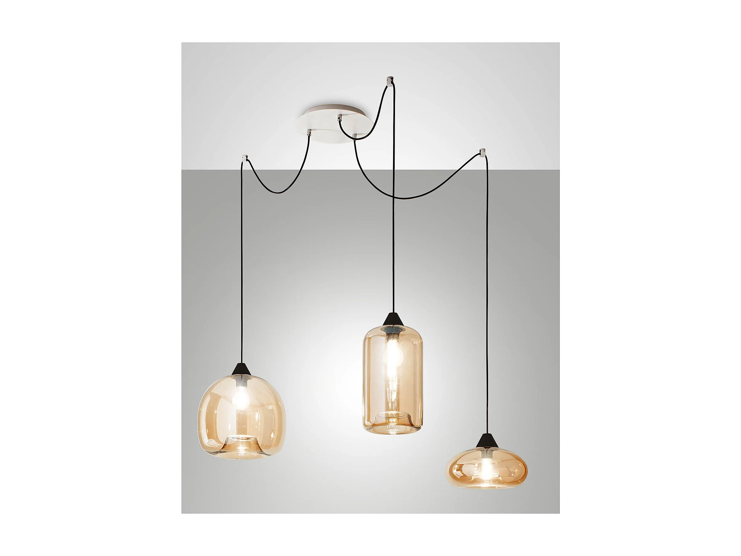 Fiona LED-hangende kroonluchter in metaal en amberkleurig geblazen glas 3496-47-125 Fabas Luce