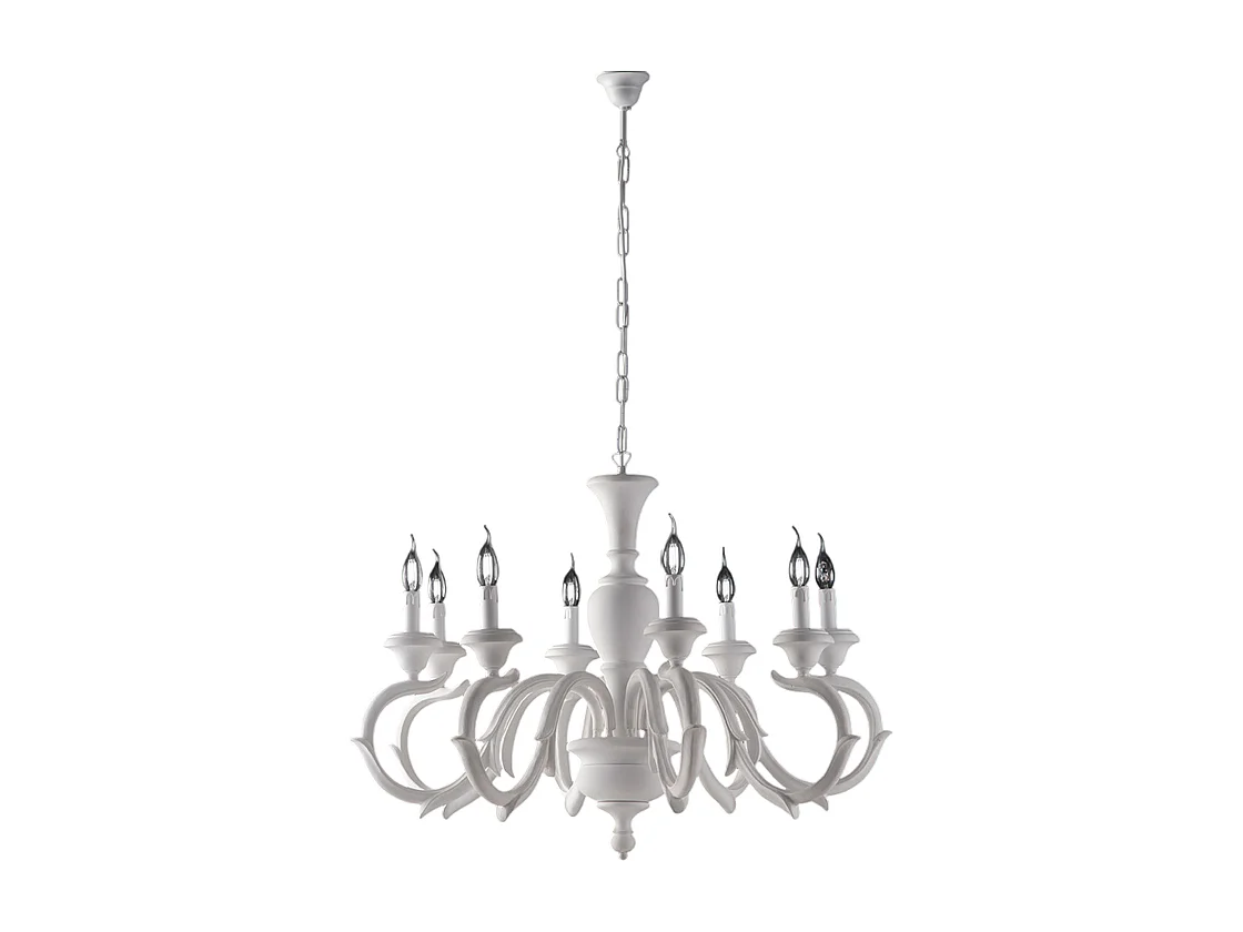 Fiorenza - Shabby witte houten kroonluchter 8 lichts 125 - Ø93 - BL172-8-BCO