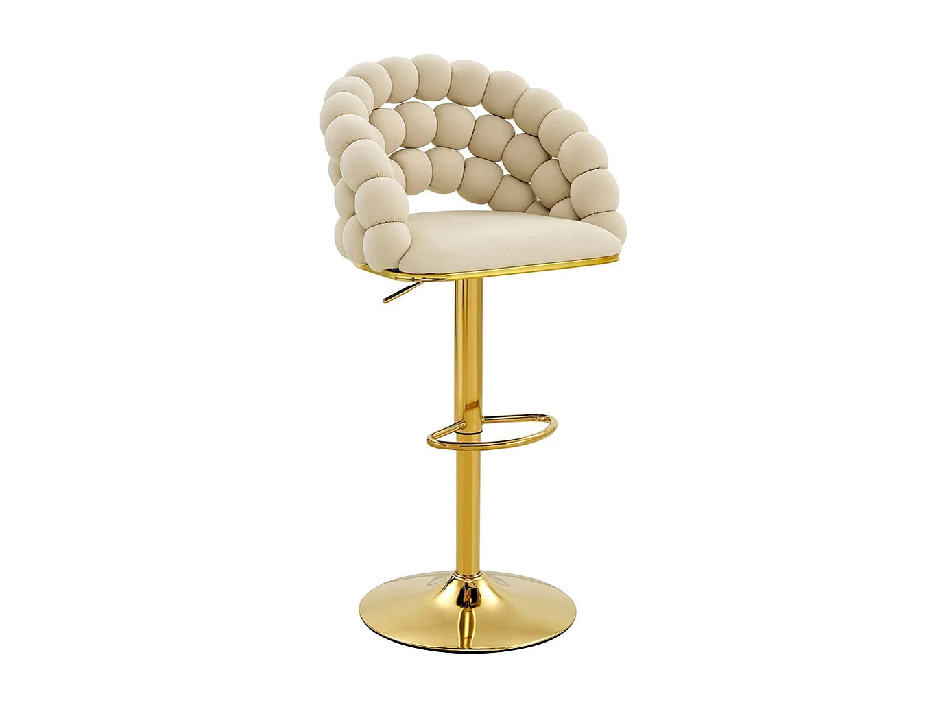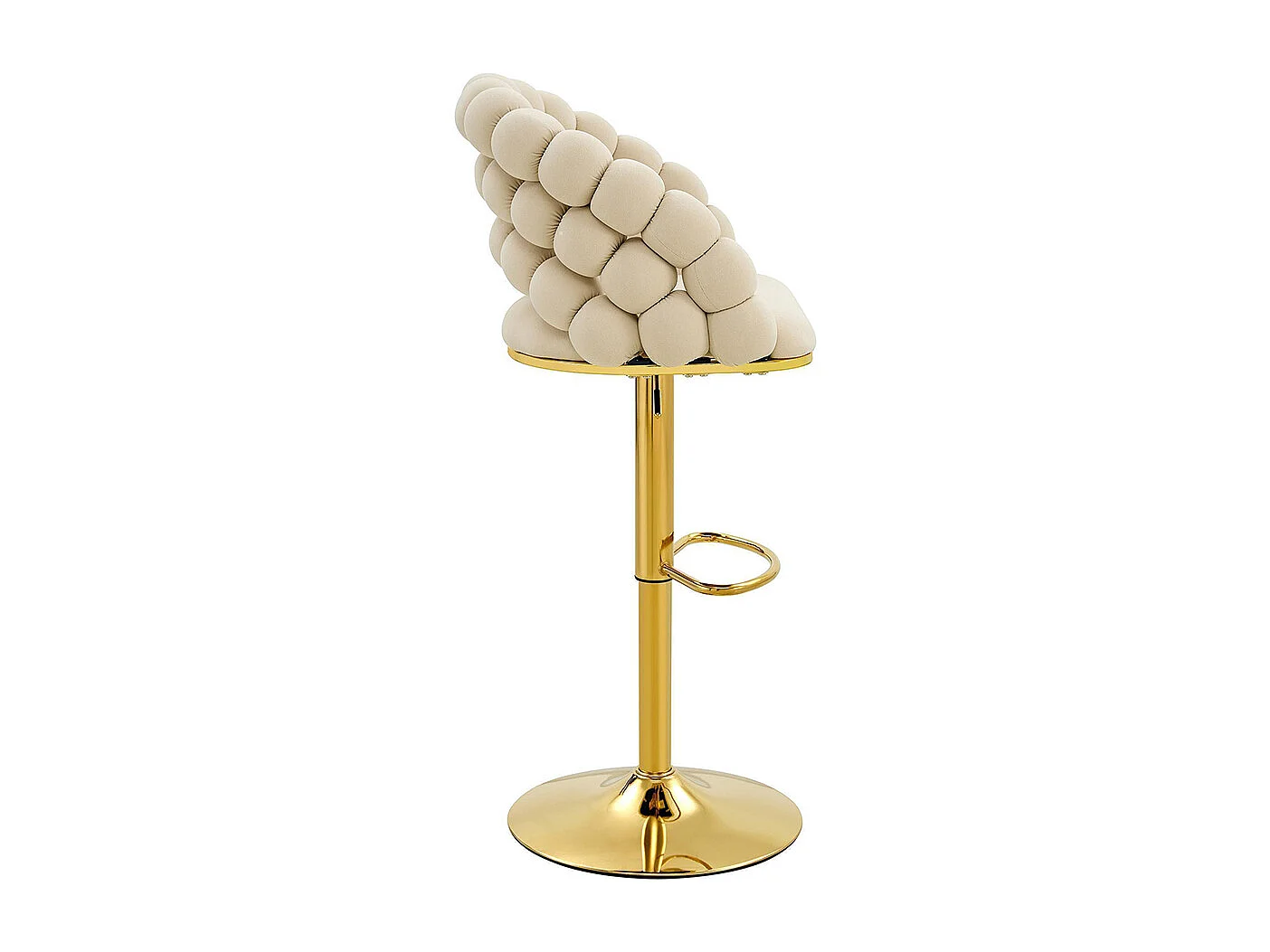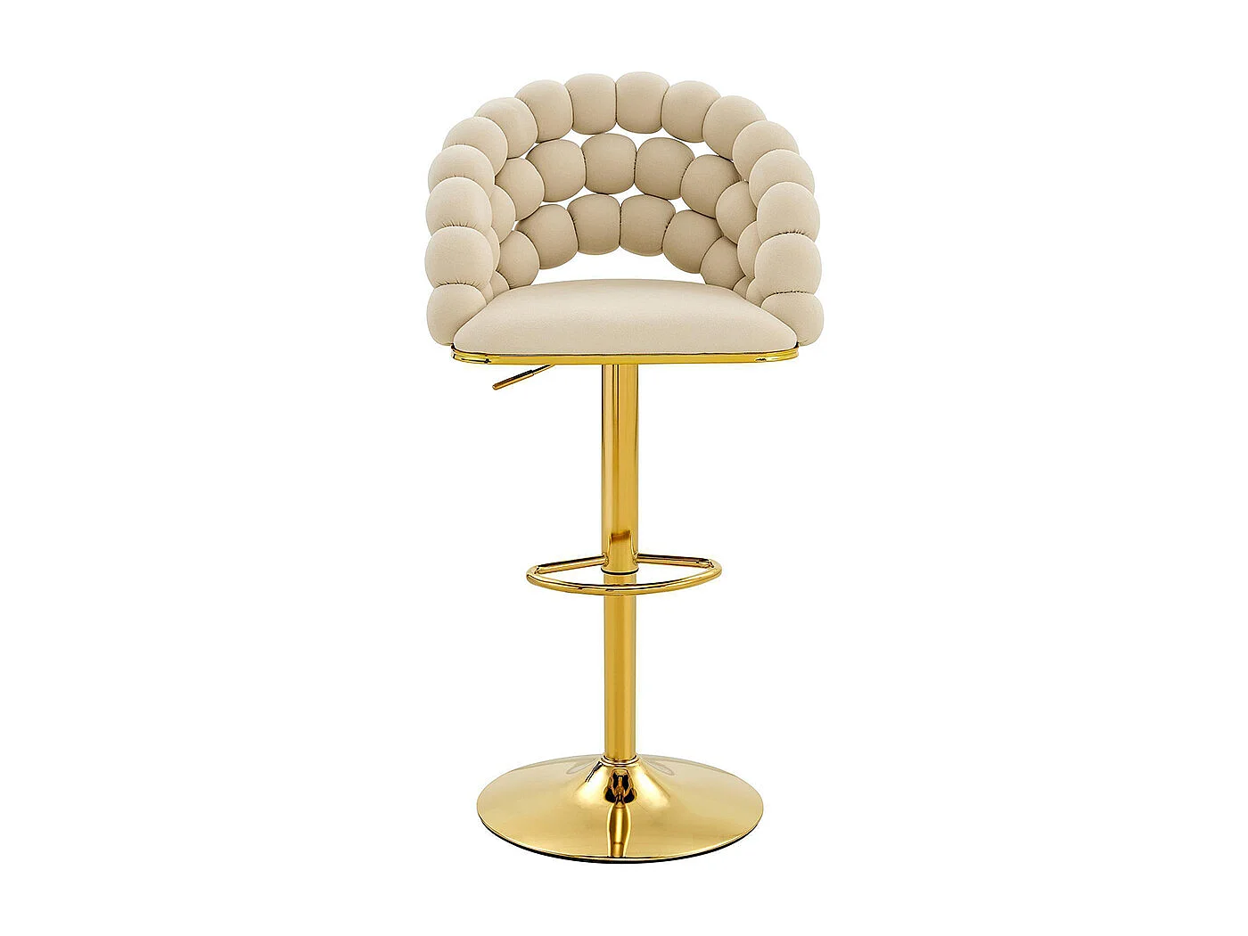Fluwelen barkrukken Set van 2 - rugleuning met ketting met bolletjes, verstelbare voet in verguld metaal, crèmewit