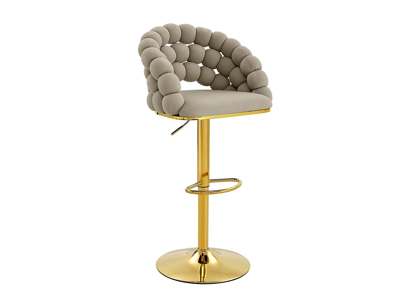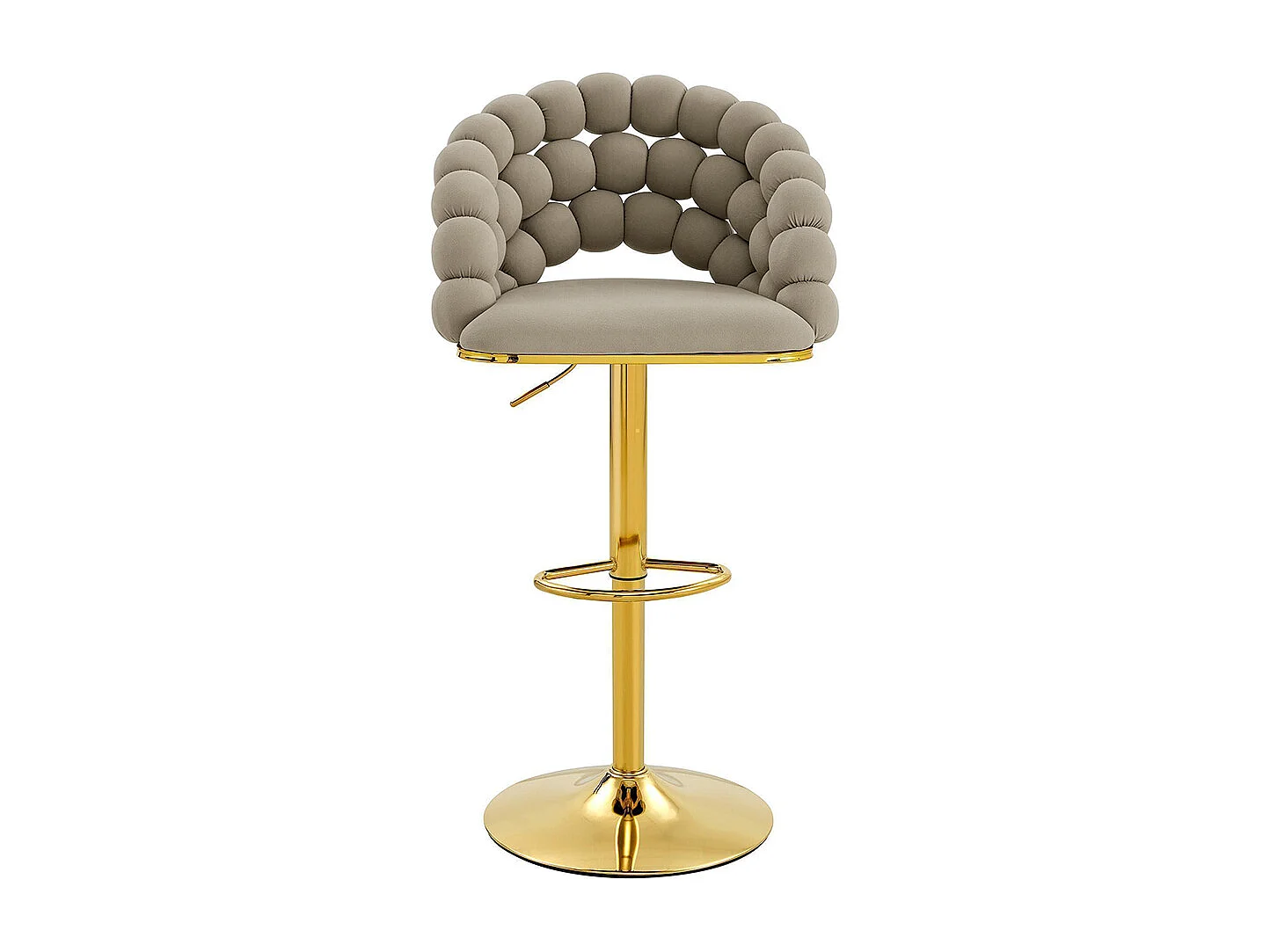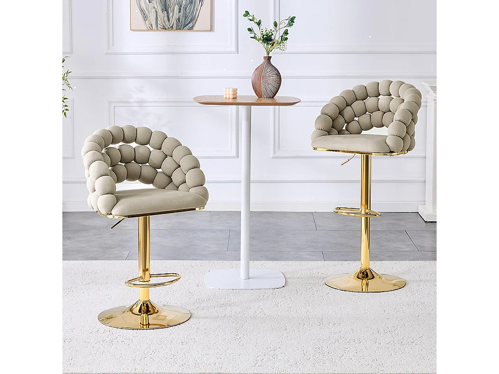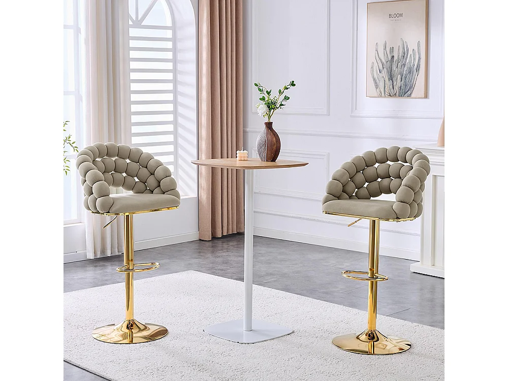 Fluwelen barkrukken Set van 2 - rugleuning met ketting met bolletjes, verstelbare voet in verguld metaal, grijs