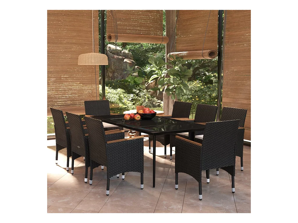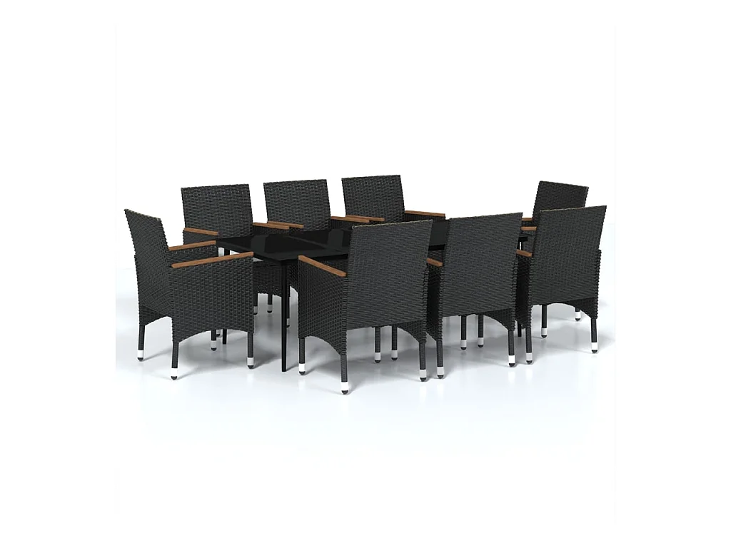 Siv 9-delige Tuinset poly rattan en staal zwart