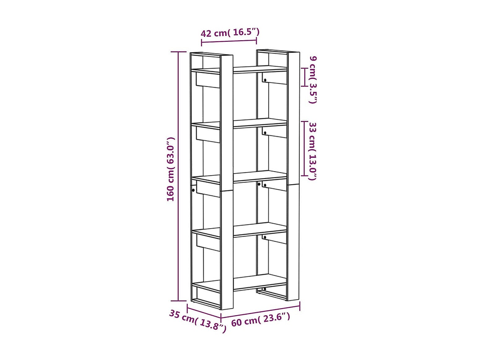 Cyrik Boekenkast/kamerscherm 41x35x160 cm massief grenenhout zwart