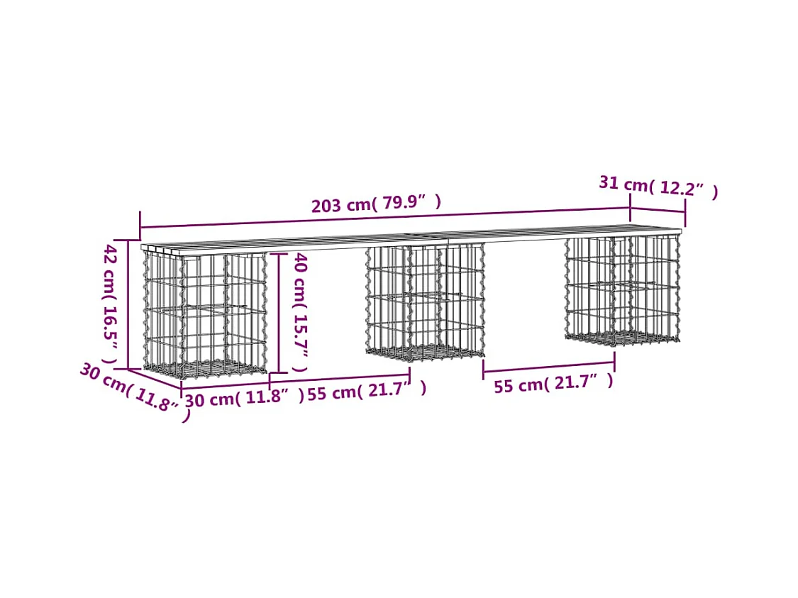 Gabion design tuinbank 203x31x42 cm geïmpregneerd grenenhout