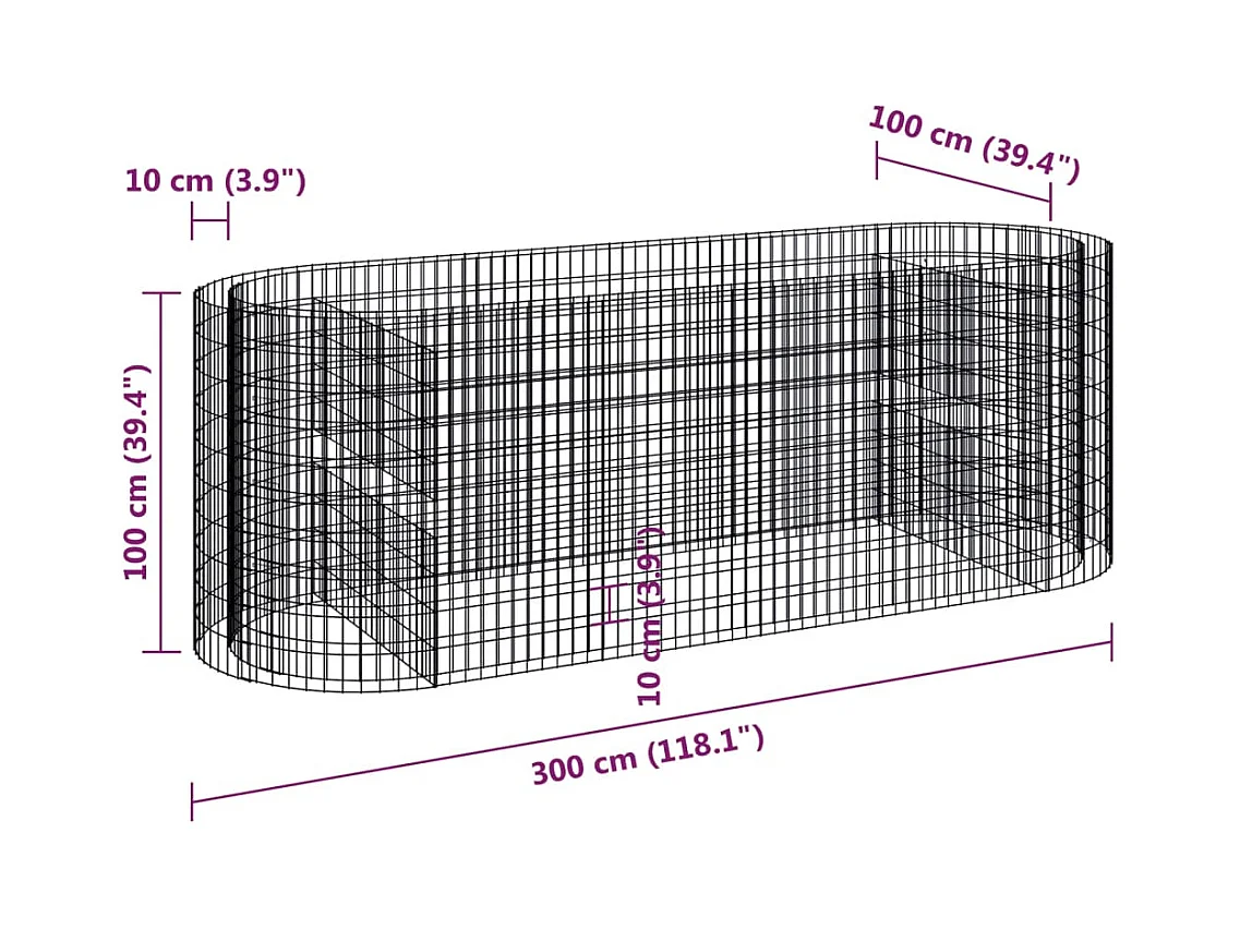 Gabion verhoogde bak Gegalvaniseerd ijzer 300x100x100 cm