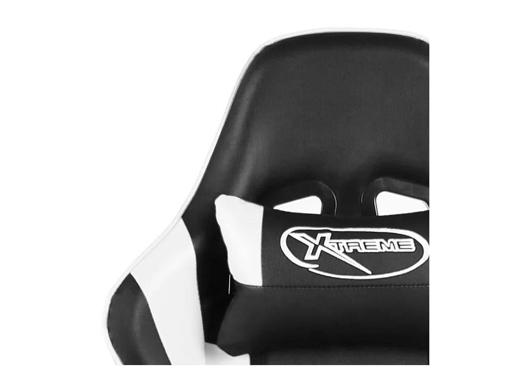 Witte en zwarte kunstleren gamingstoel en voetenbank