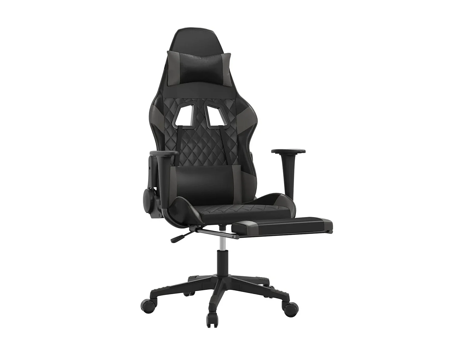 Massage gamestoel met voetensteun kunstleer zwart en grijs
