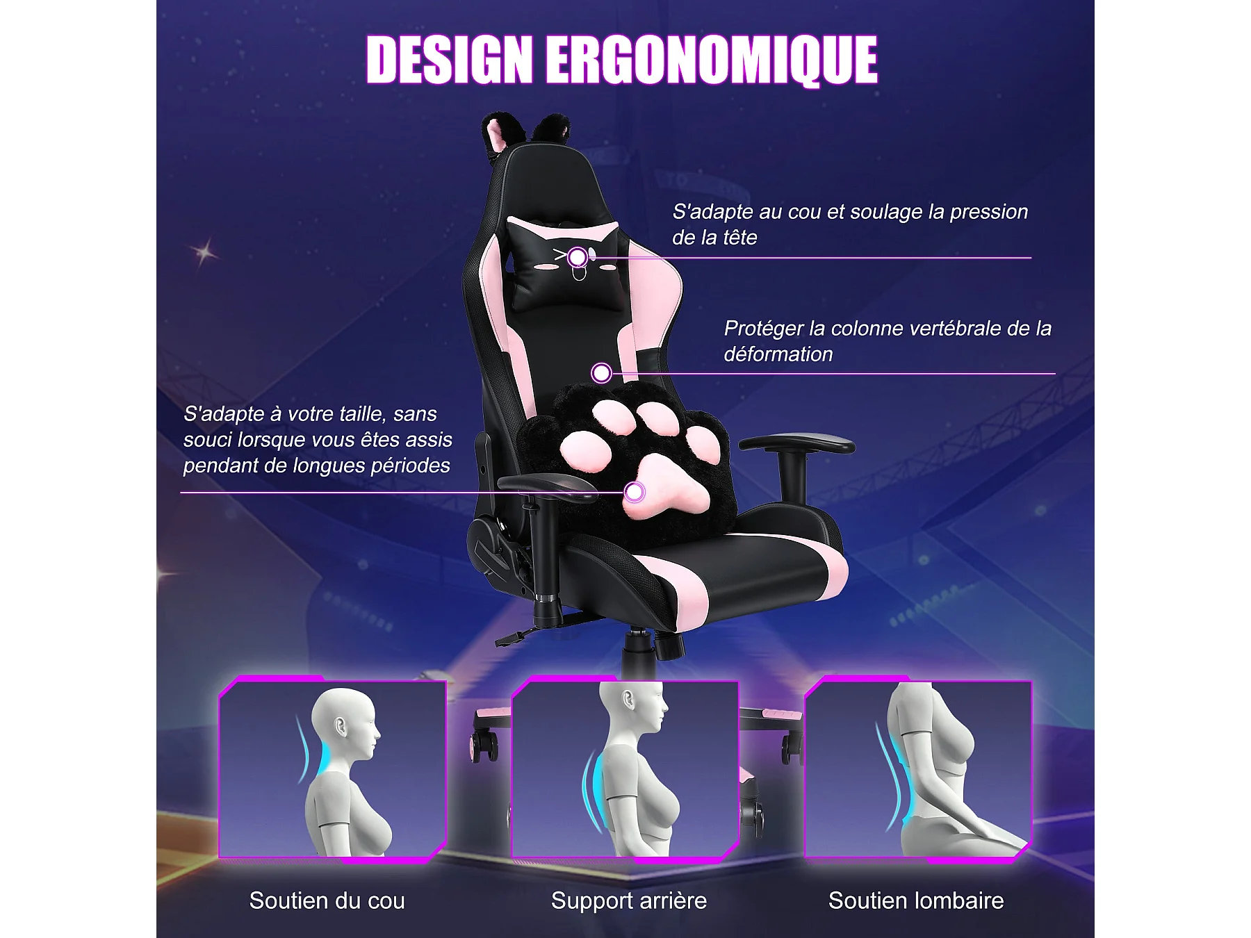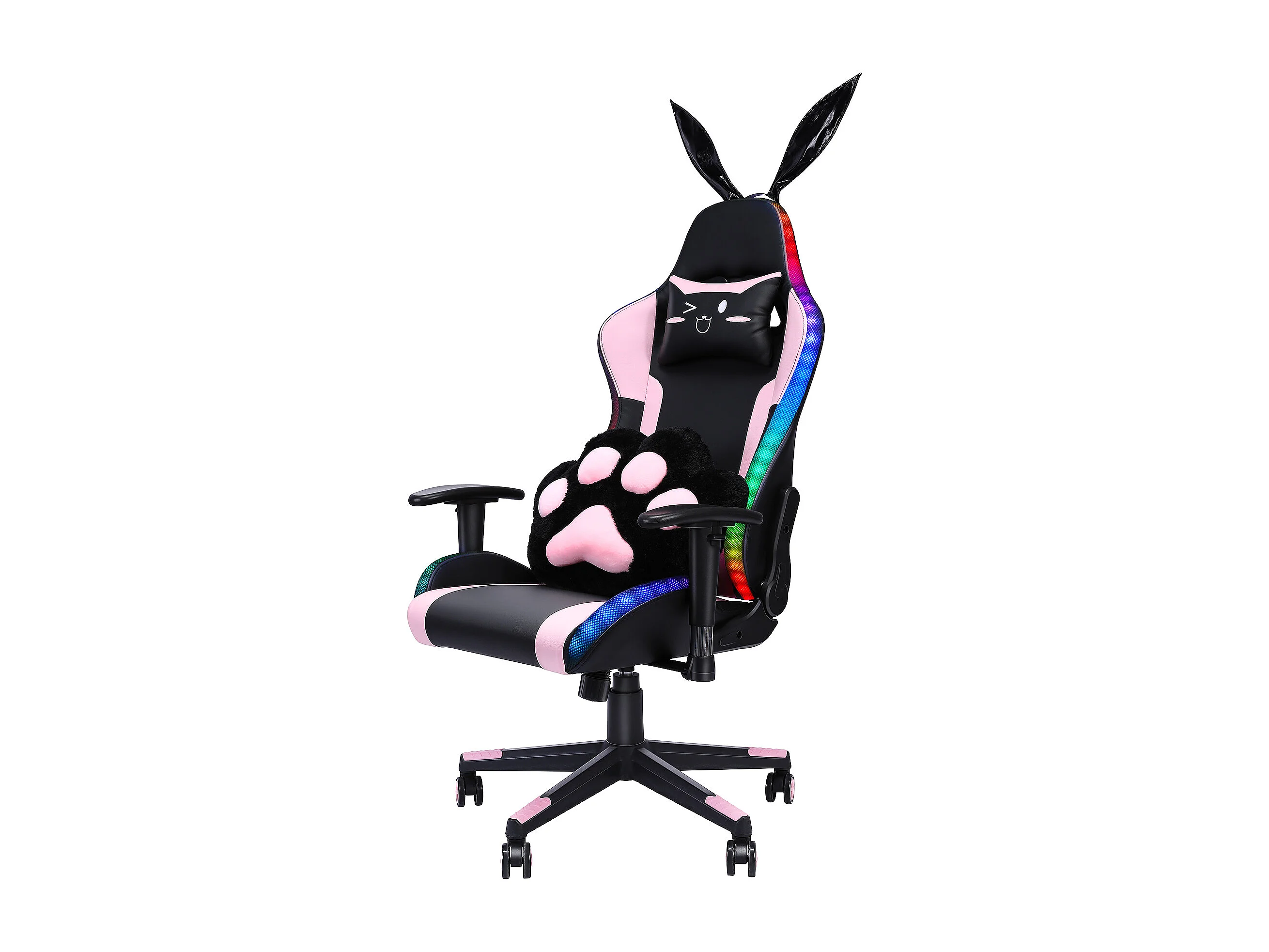 Gamingstoel roze RGB met speakers, LED, hoofdsteun, armleuningen en voetensteun - Ergonomisch, kantelbaar PU leder voor eSport (154 karakters)