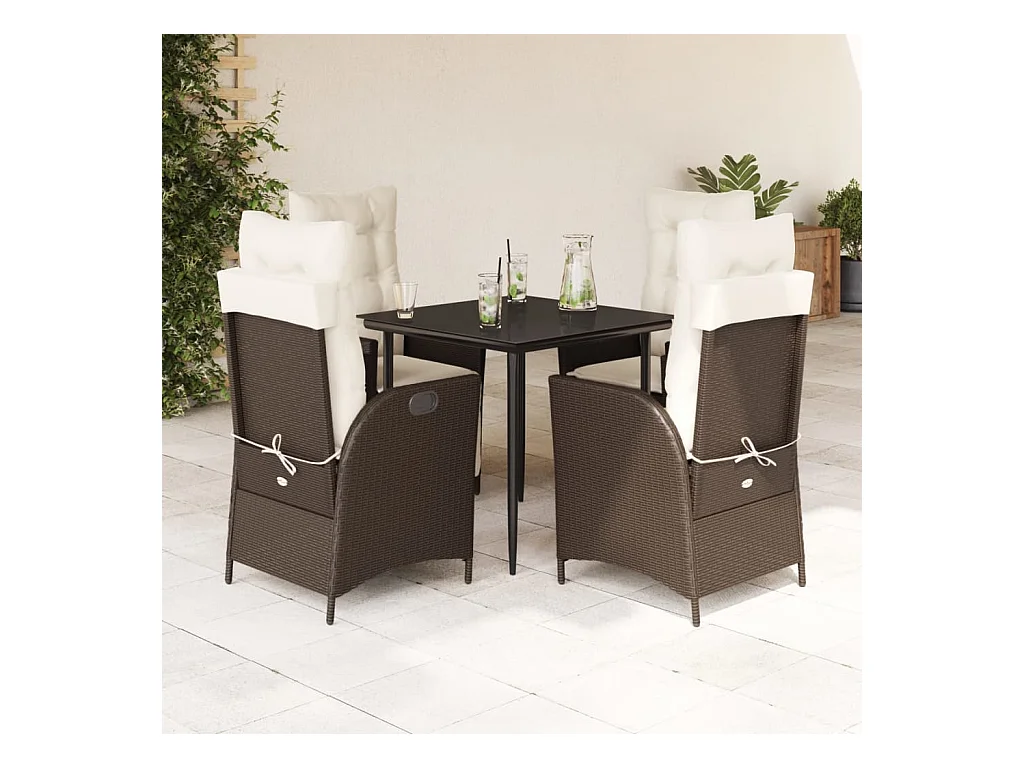 Mauno 5-delige Tuinset met kussens poly rattan bruin