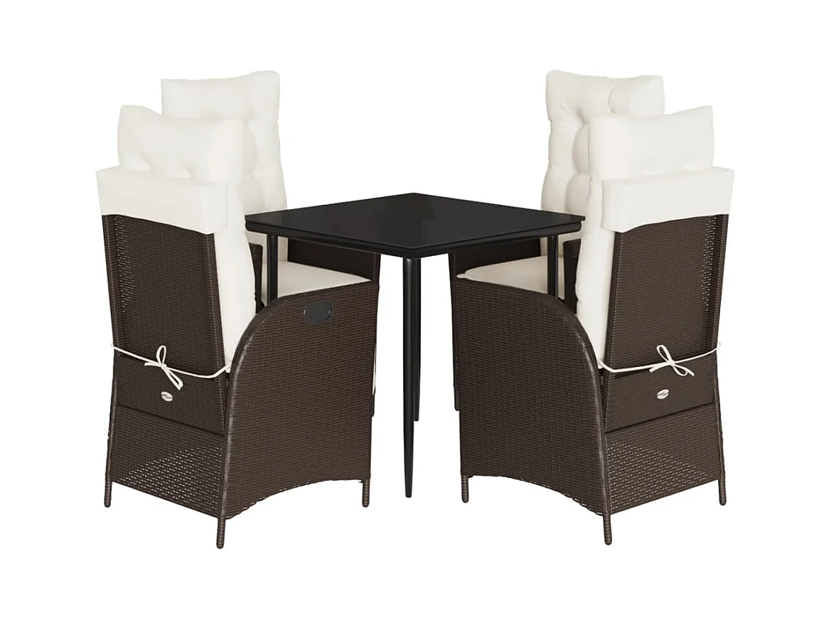 Vessira 5-delige Tuinset met kussens poly rattan bruin