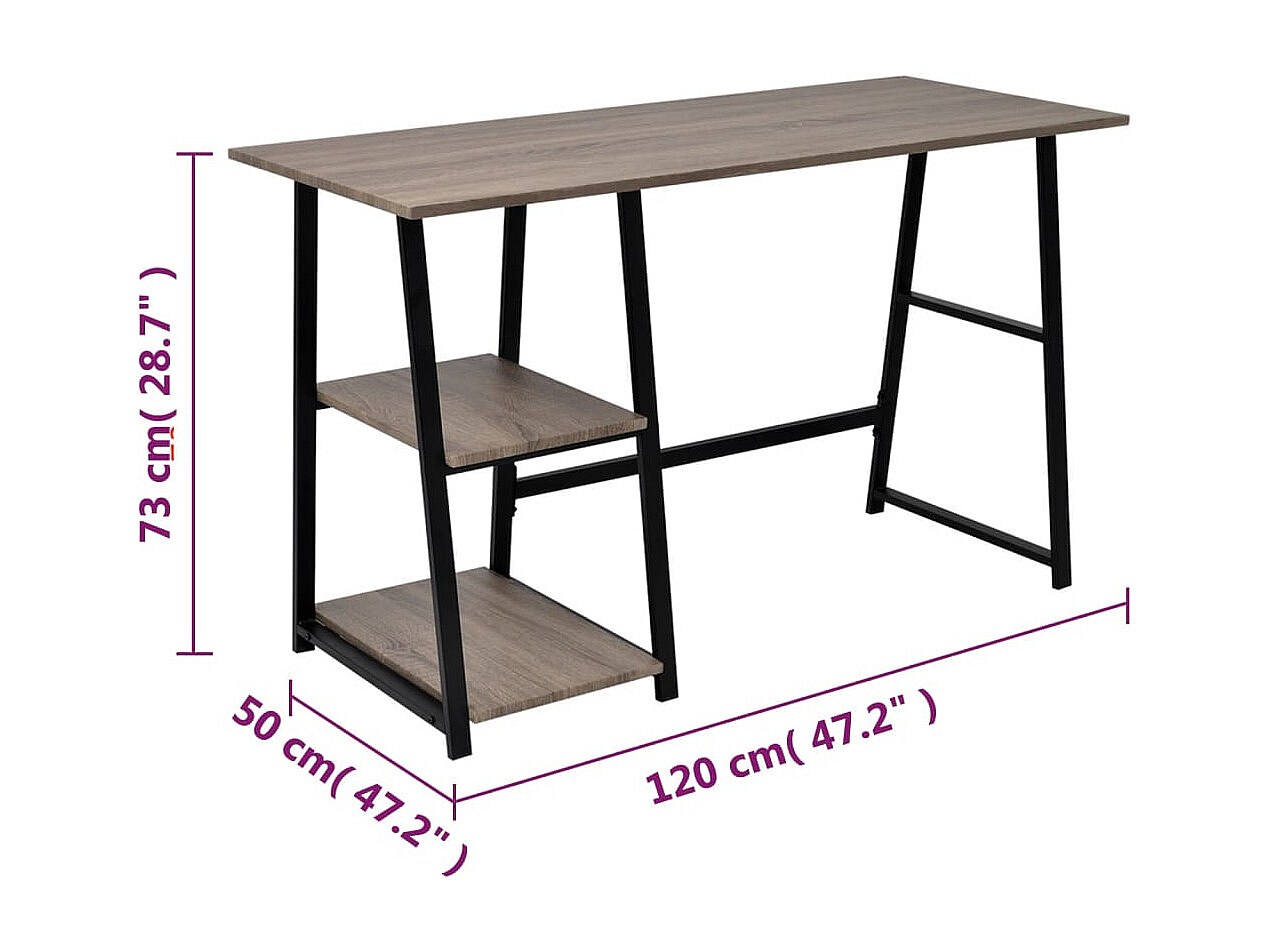 Garden Furniture - Bureau met 2 schappen grijs en eikenkleurig