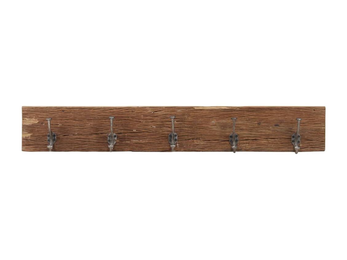 Garden Furniture - Wandkapstok met 5 haken 100x2,5x15 cm massief gerecycled hout