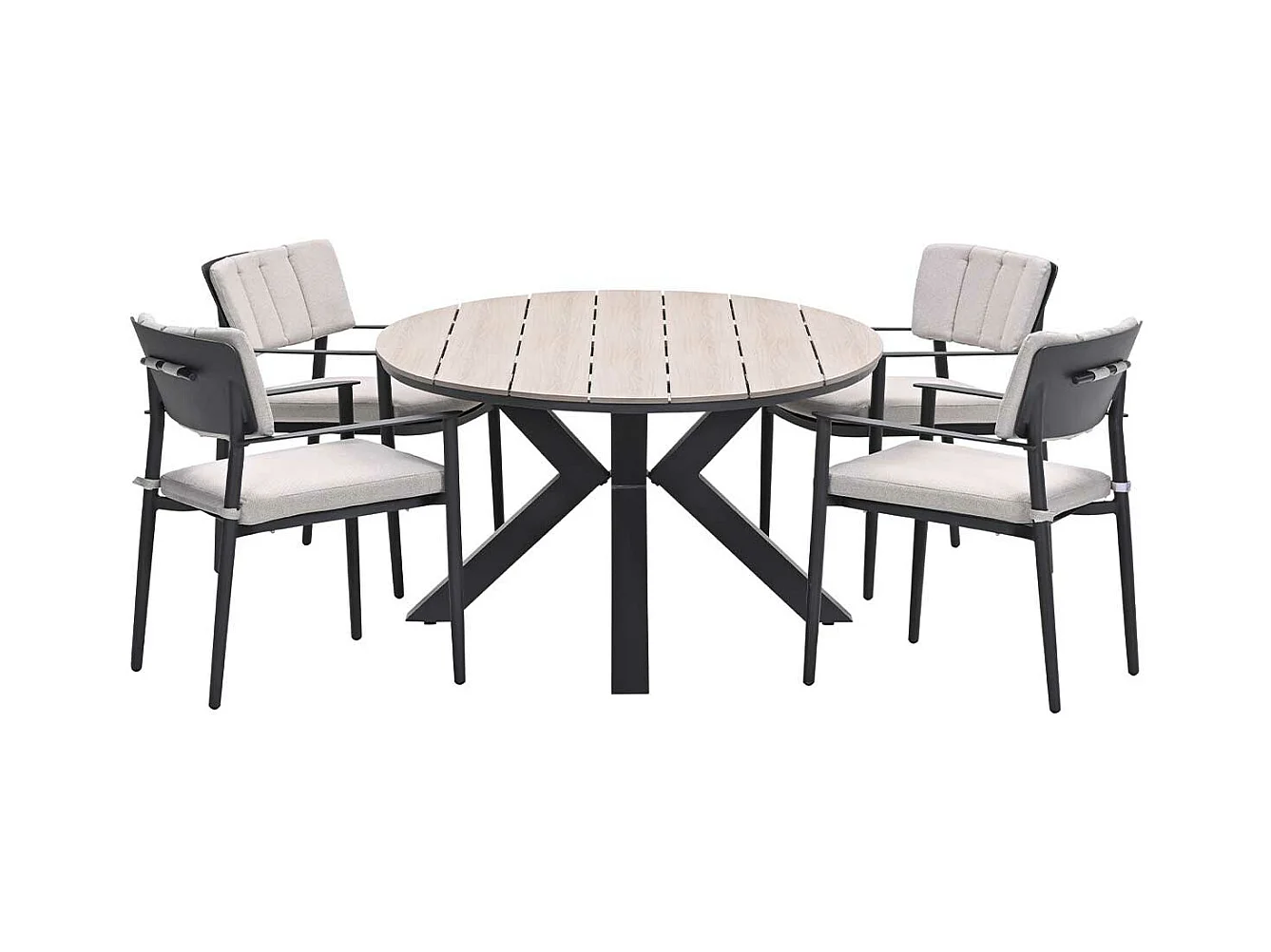 Garden Impressions Aleria tuinset 5-delig taupe - Tulli tuintafel 180x115 cm - light teak vironwood