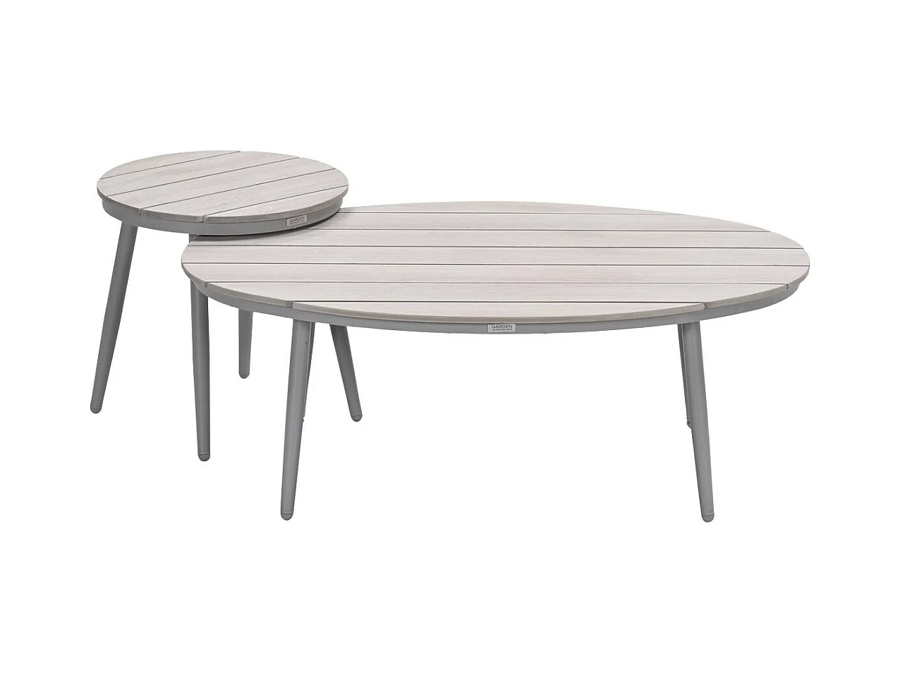 Garden Impressions Lucas bijzettafels taupe - teak look - Ø50x48 cm & 120x75x45 cm