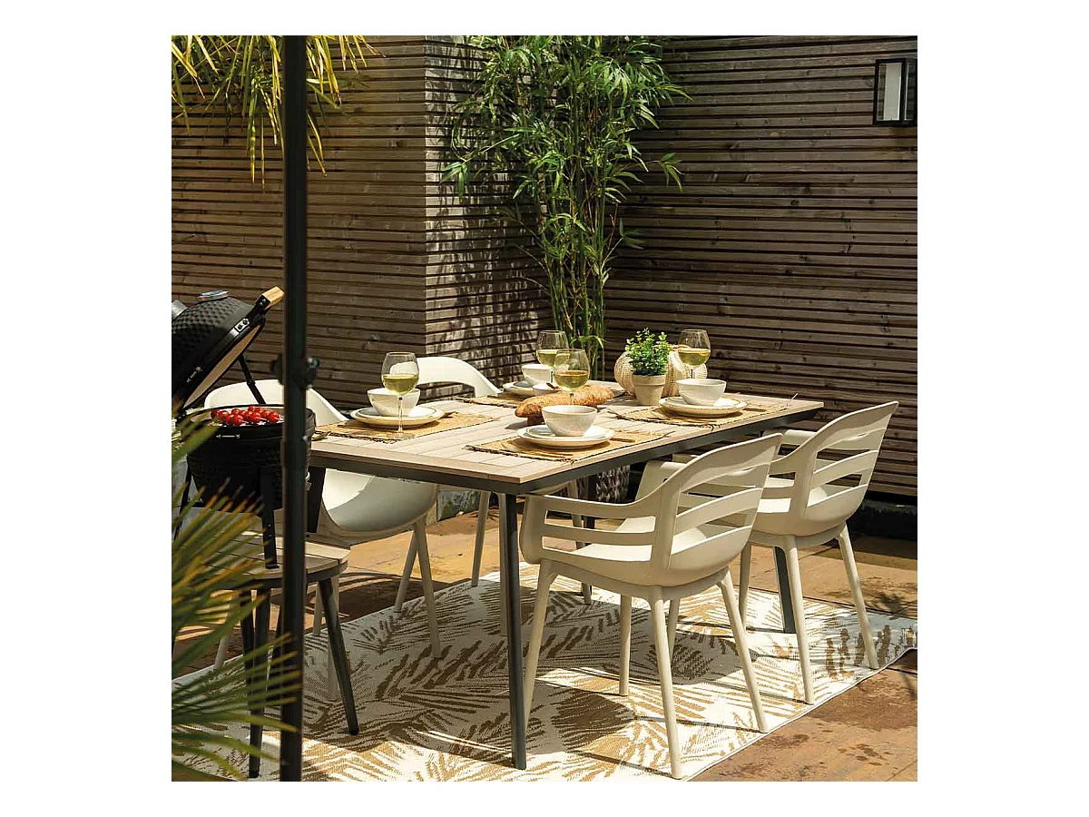 Set van 2 kunststof rotan stoelen met kussens OKA