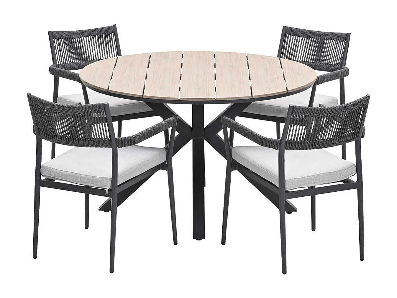 Garden Impressions Tineo tuinset 5-delig - Tulli tuintafel Ø122x75 cm - light teak vironwood