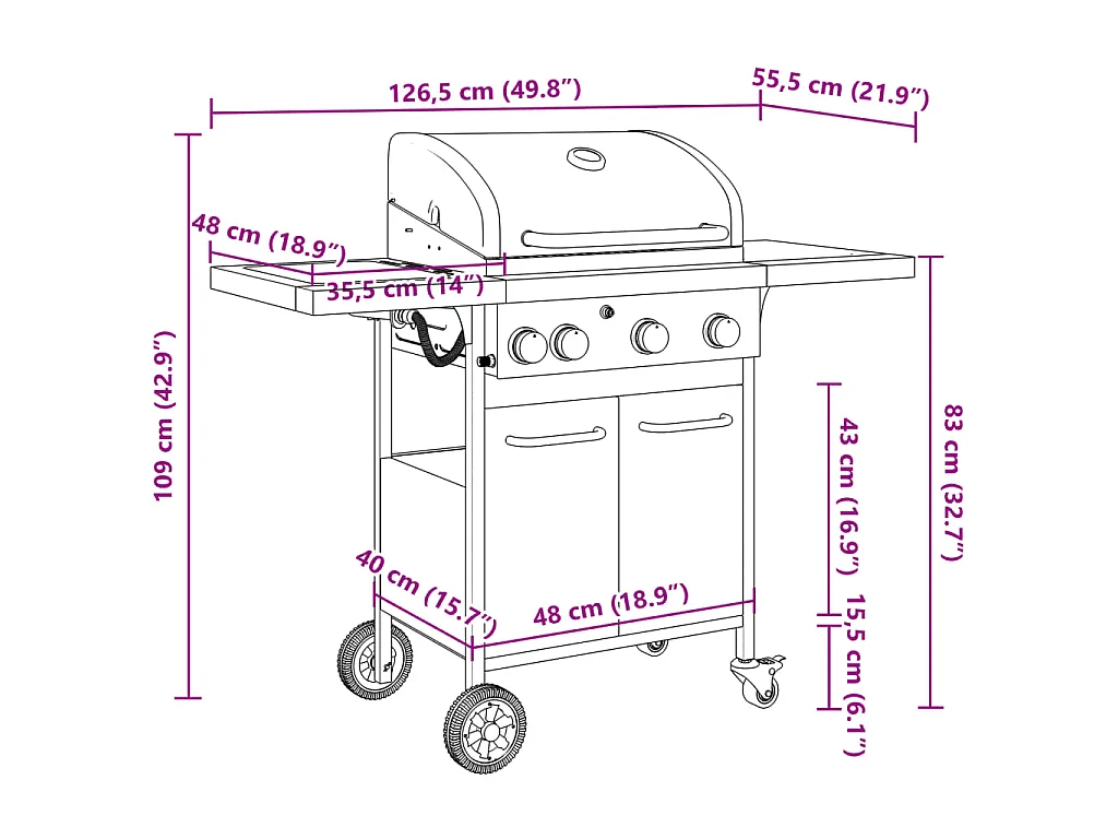 Gasbarbecue met 4 branders gepoedercoat staal zwart