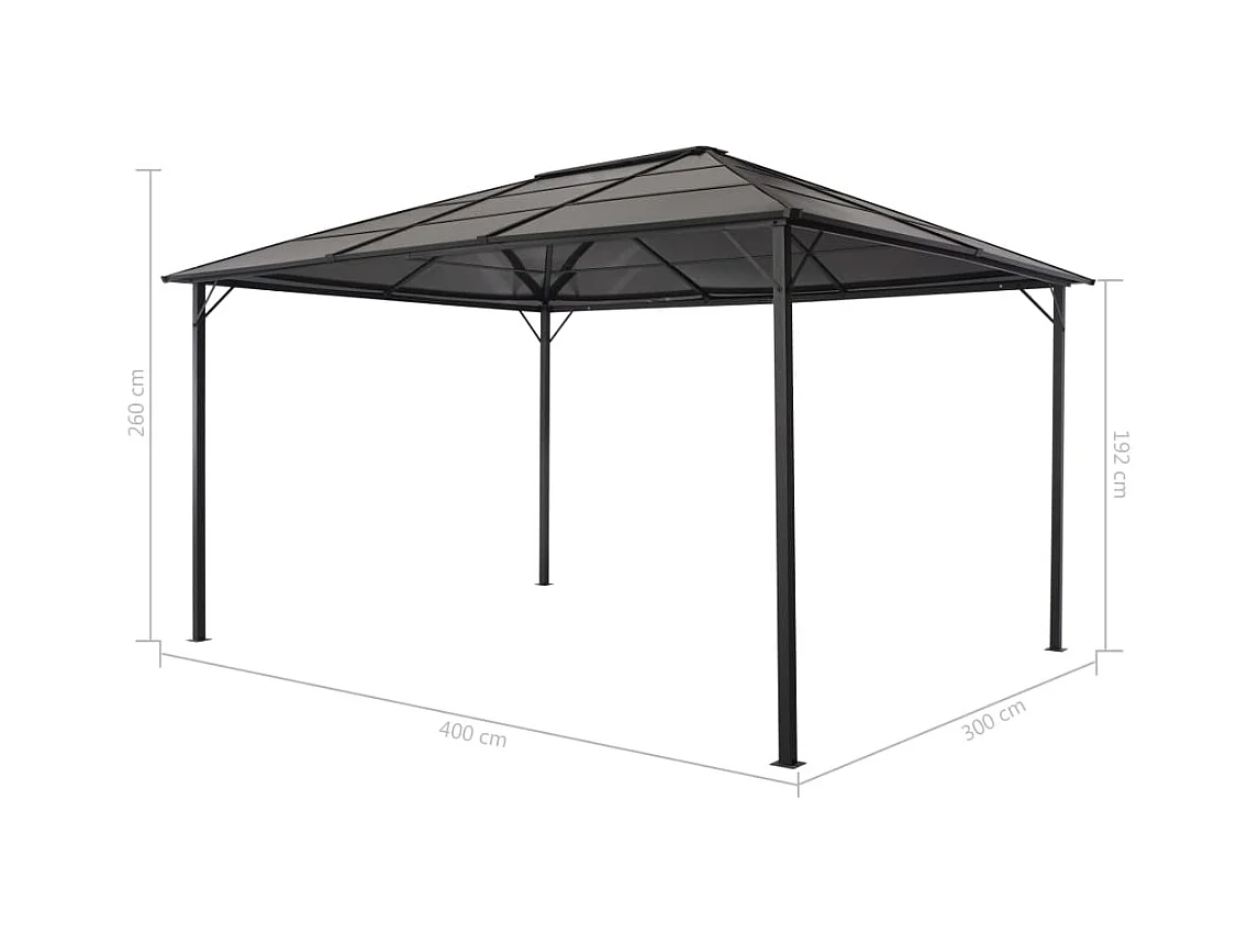 Gazebo met dak Aluminium 4x3x2,6 m Zwart