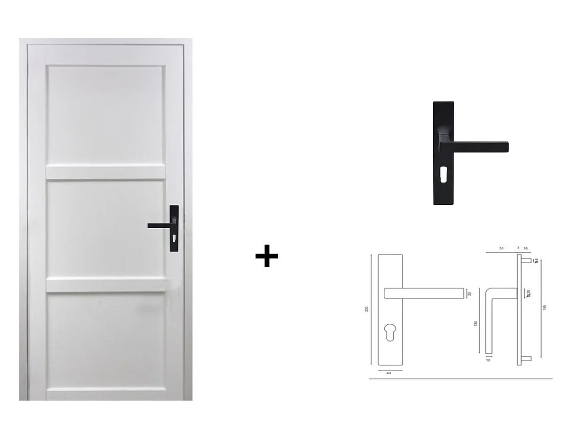 Gd Menuiseries Korya Wit Deurblok 3 Panelen H204 X L73 Linker Duwzijpaneel + Handgreep