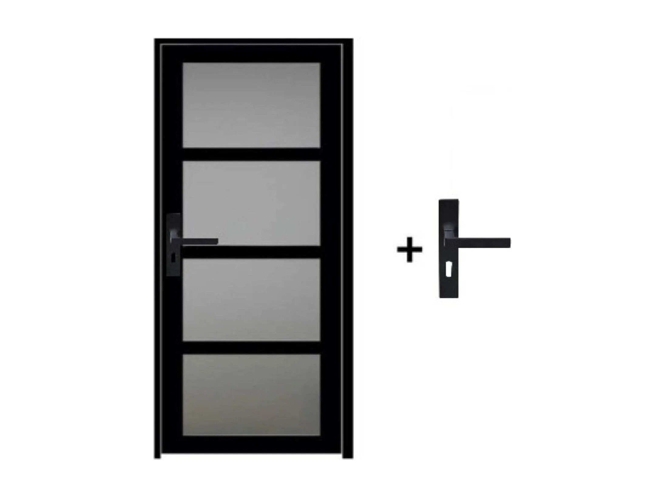 Gd Menuiseries Telia Zwart Glazen Deurblok H204 X L83 Duwend Rechter Zijpaneel + Handgreep