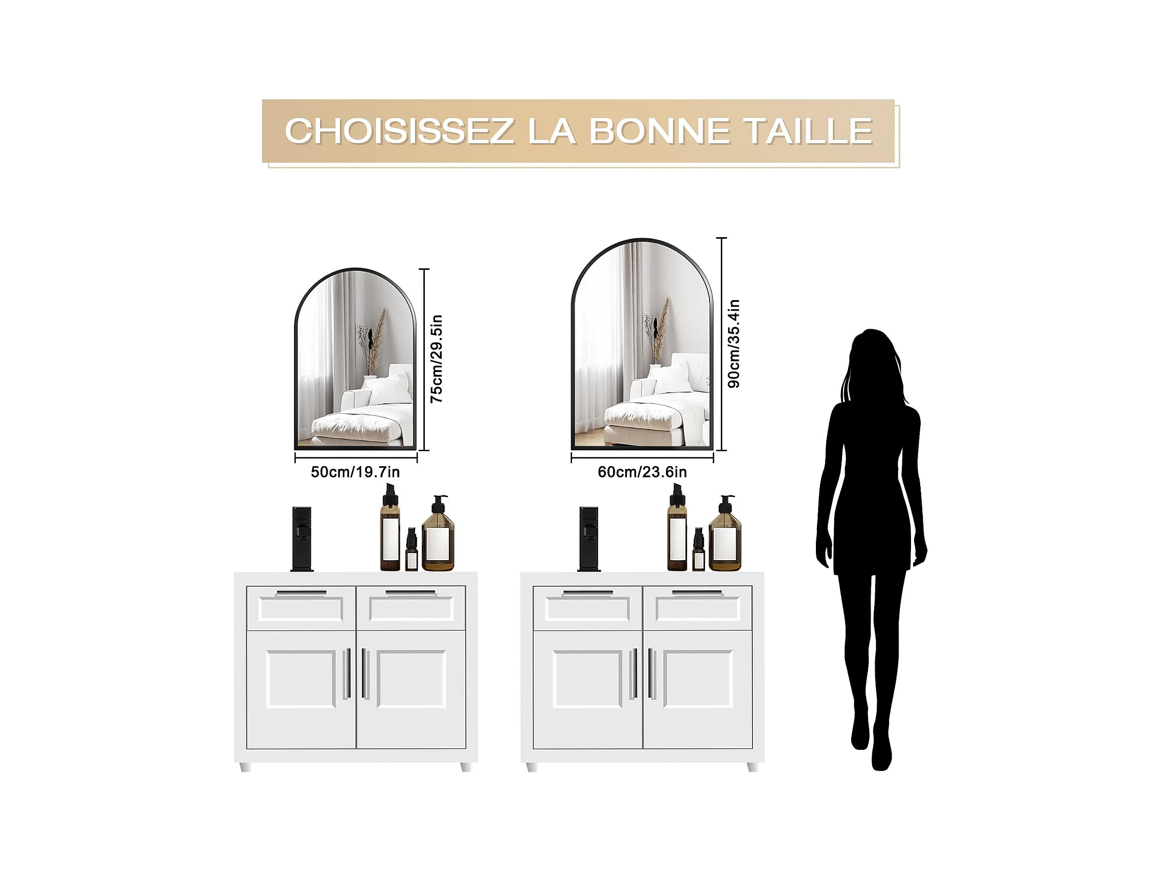 60×90cm gebogen wandspiegel, grote make-upspiegel met aluminium frame voor entree, slaapkamer, woonkamer, badkamer, zwart
