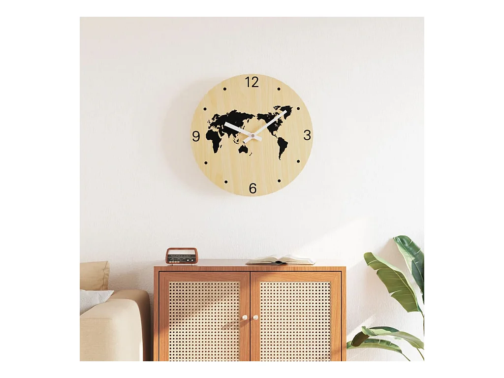 Geel-zwarte wandklok Ø30 cm bewerkt hout