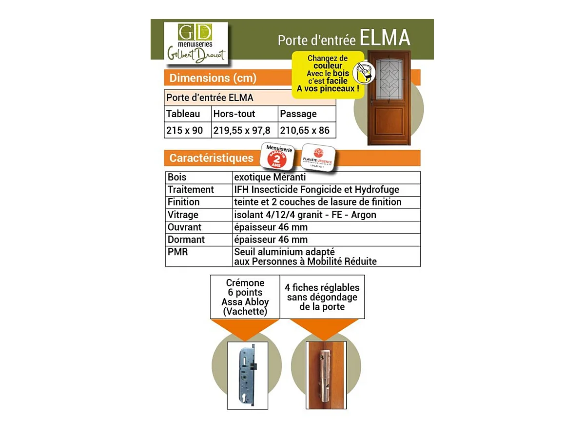 Geglazuurde houten toegangsdeur, Elma, H, 215xl, 90 p, links Afmeting tafel