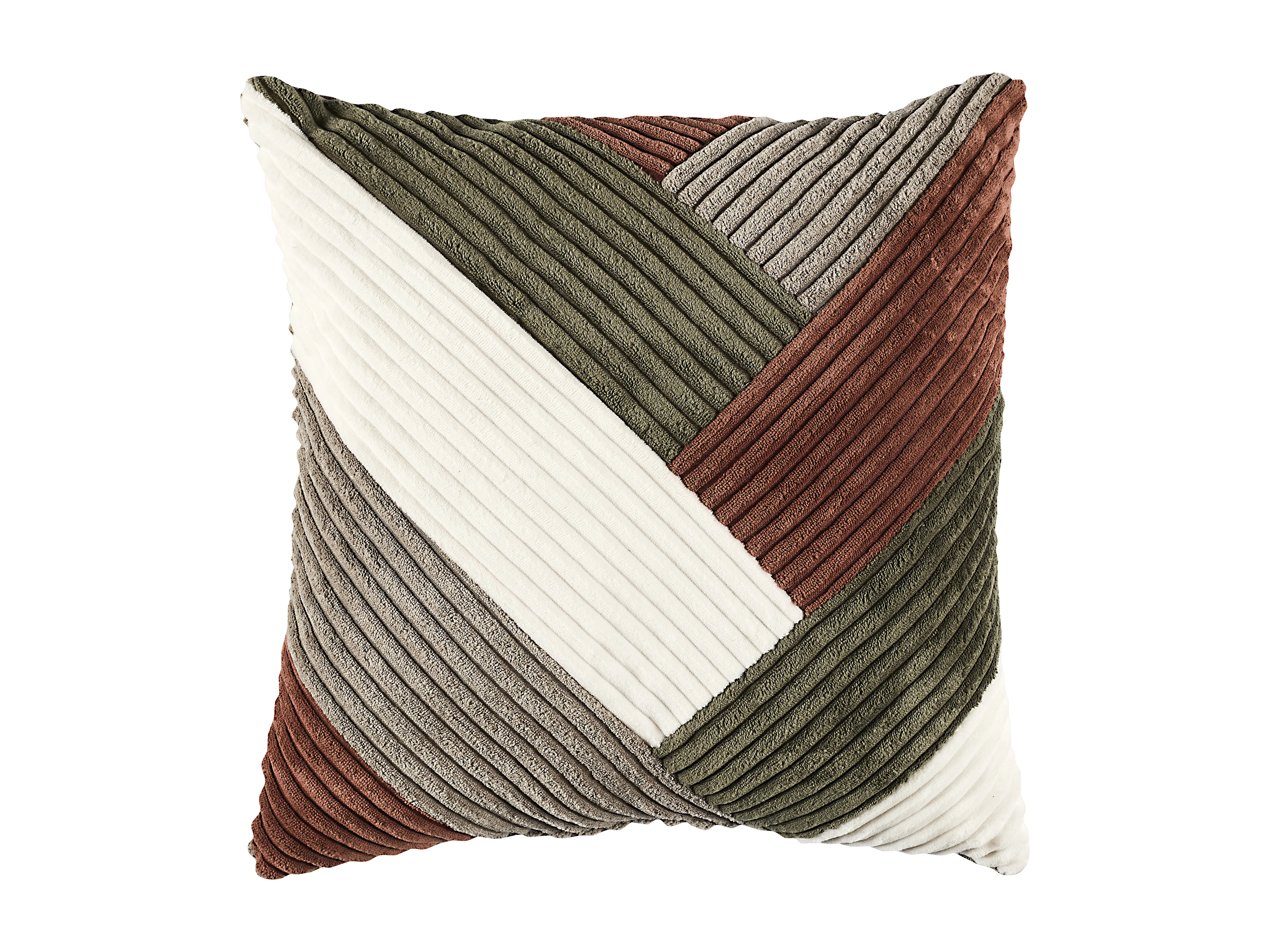 Gekleurd Ribfluweel Patchwork Kussen 40x40 cm in Velours en Polyester, Boheemse en Hedendaagse Design