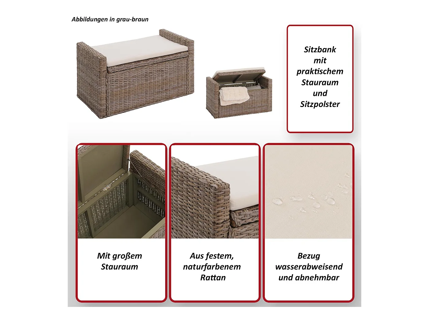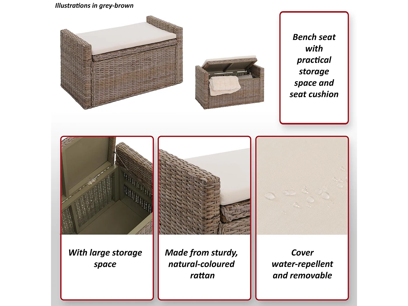 Opbergkist Genua rotan, kubu grijs