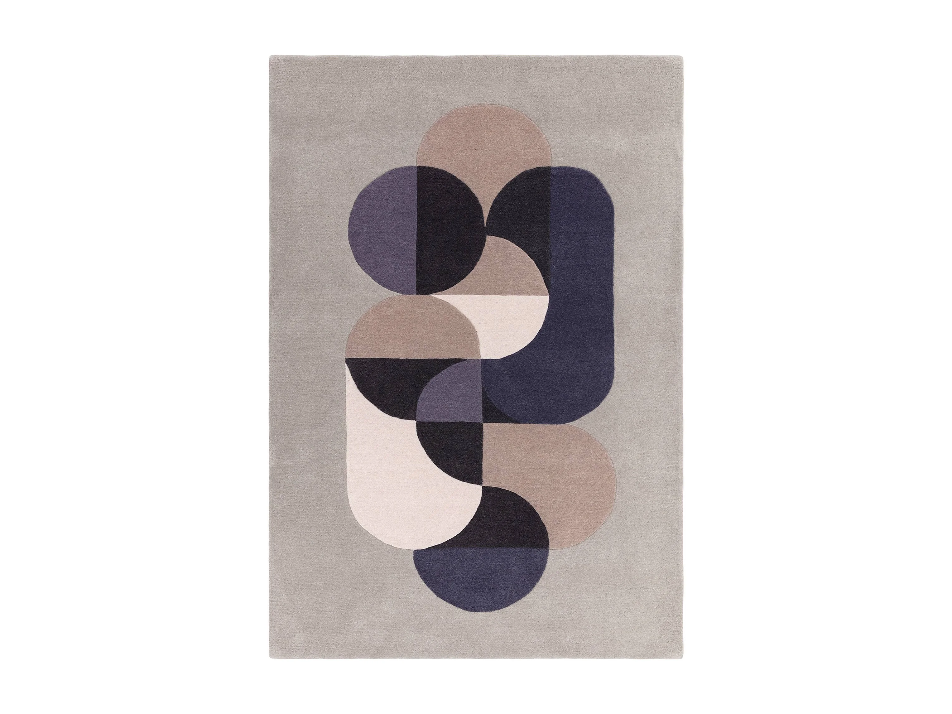 Geometrisch tapijt, handgemaakt 100% wol - 160x230cm - grijs, blauw, zwart, beige, crème - Matrix Statement