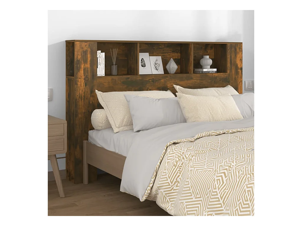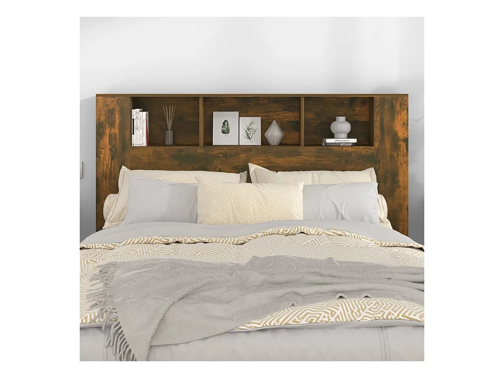 Gerookt eiken LED hoofdbord 160x18,5x103,5cm bewerkt hout