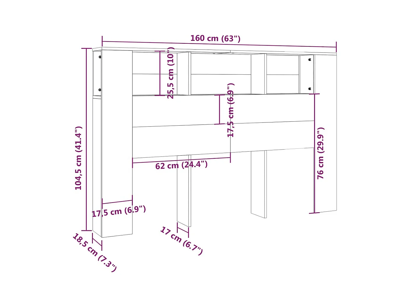 Sonoma eiken hoofdeindekast 160x18,5x104,5 cm