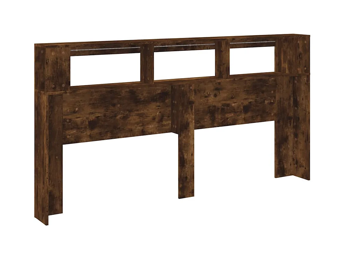 Gerookt eiken LED hoofdbord 180x18,5x103,5cm bewerkt hout