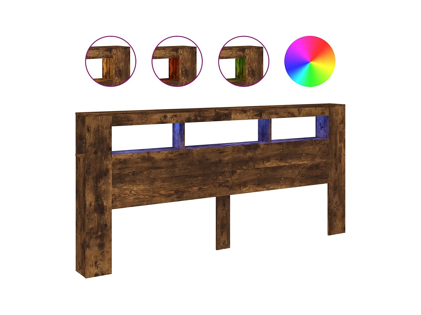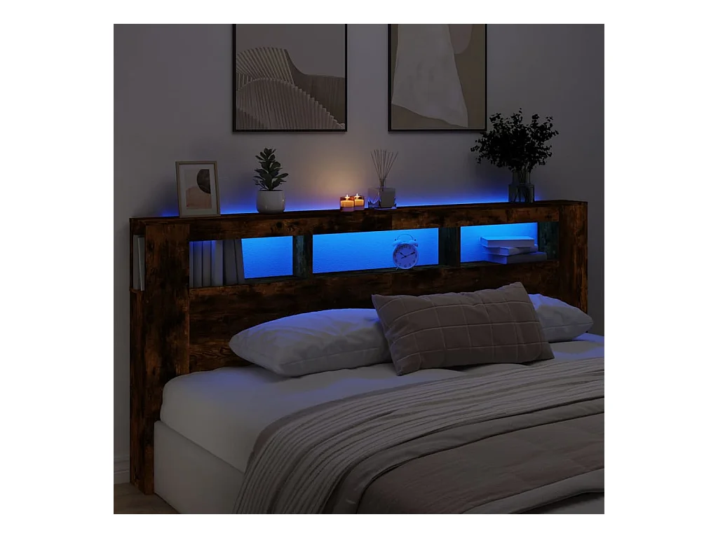 Gerookt eiken LED hoofdbord 180x18,5x103,5cm bewerkt hout