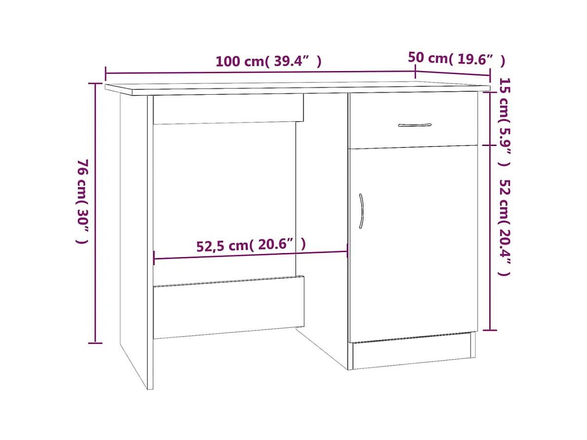 Sonoma Eiken Bureau 100x50x76 cm Bewerkt Hout