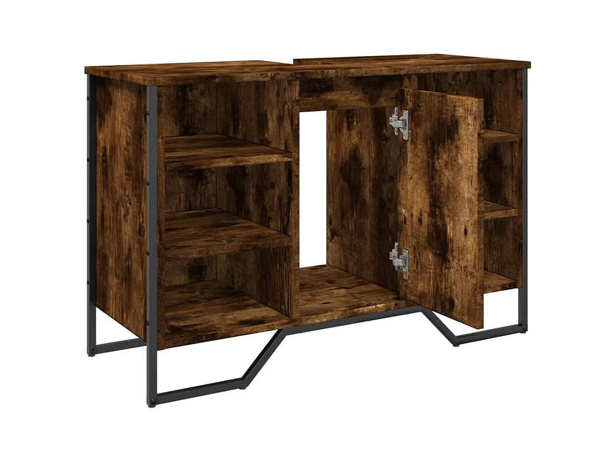 Gerookt eikenhouten wastafelmeubel 91x35x60 cm