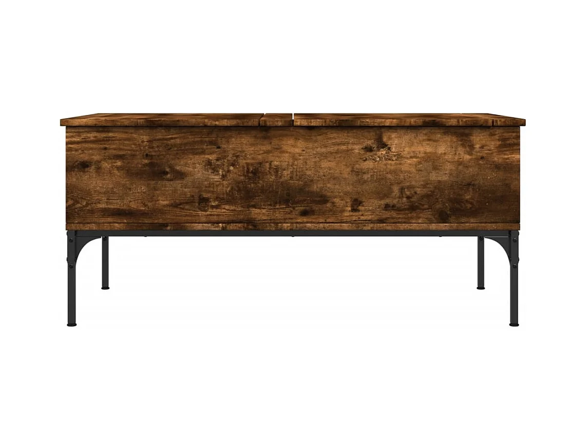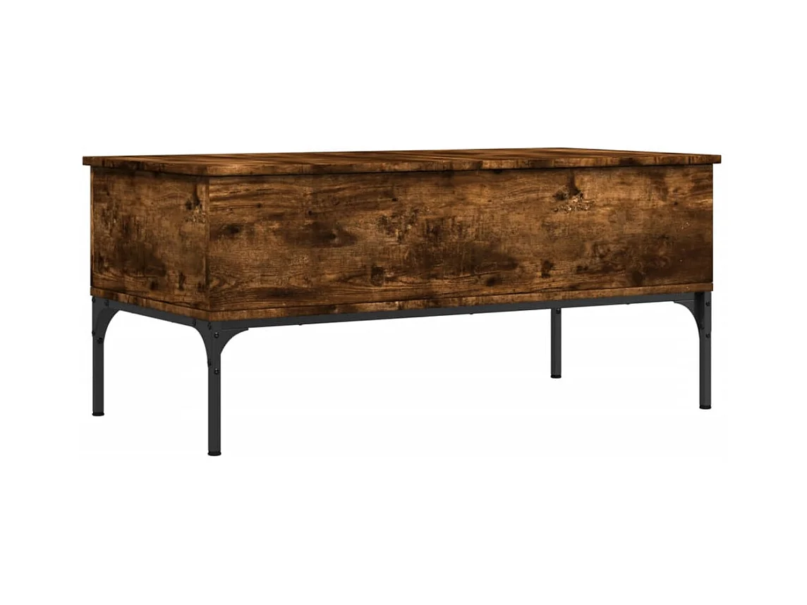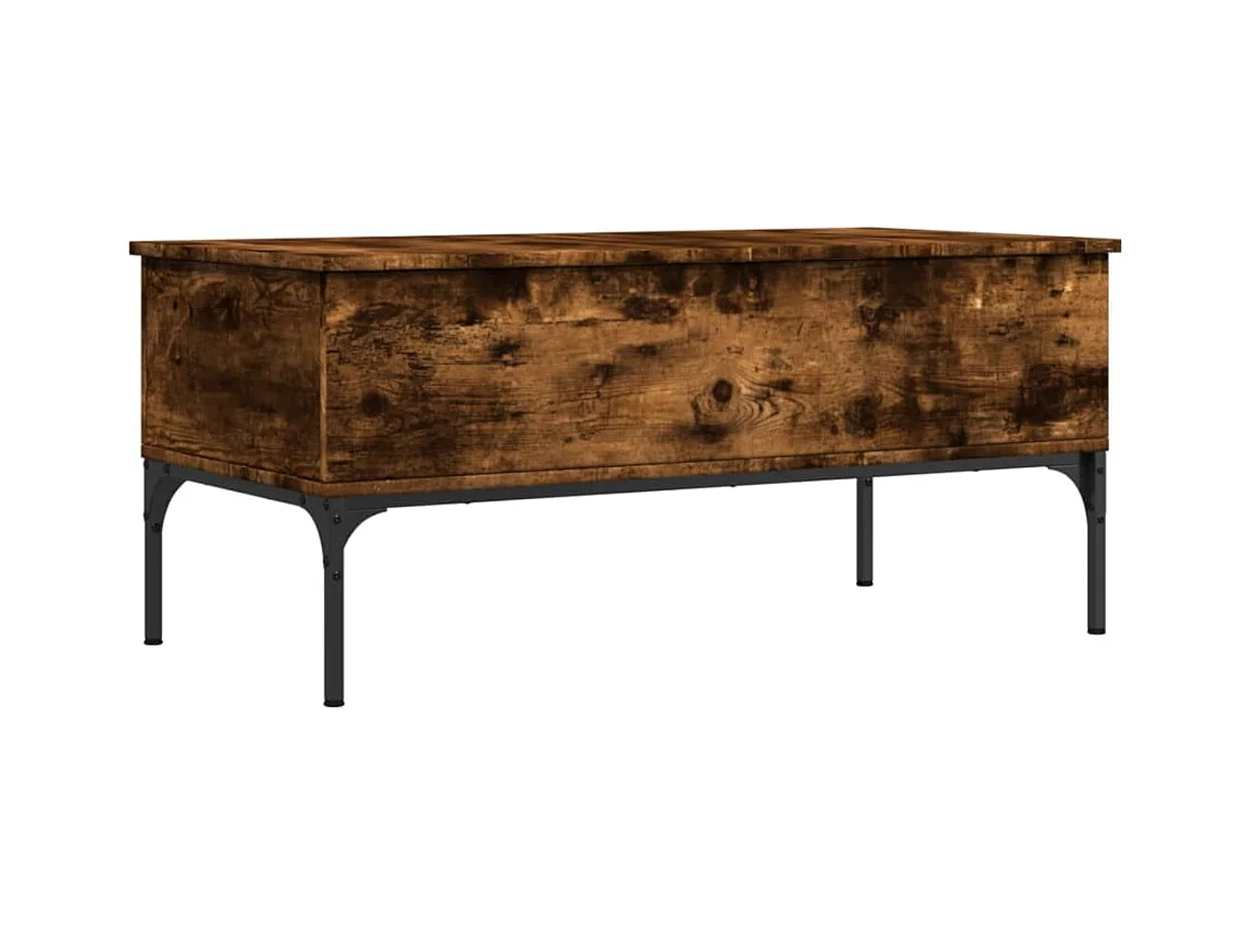Gerookte eiken salontafel 100x50x45 cm bewerkt hout en metaal