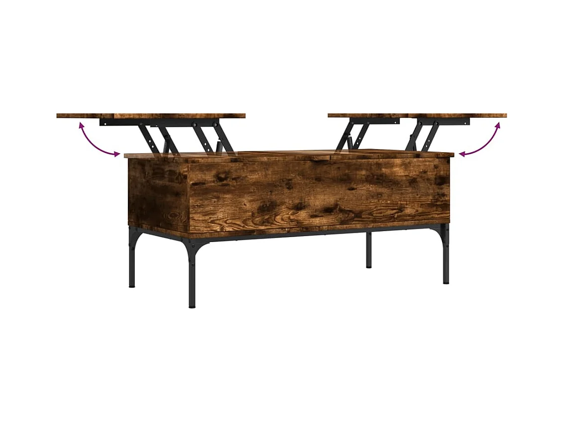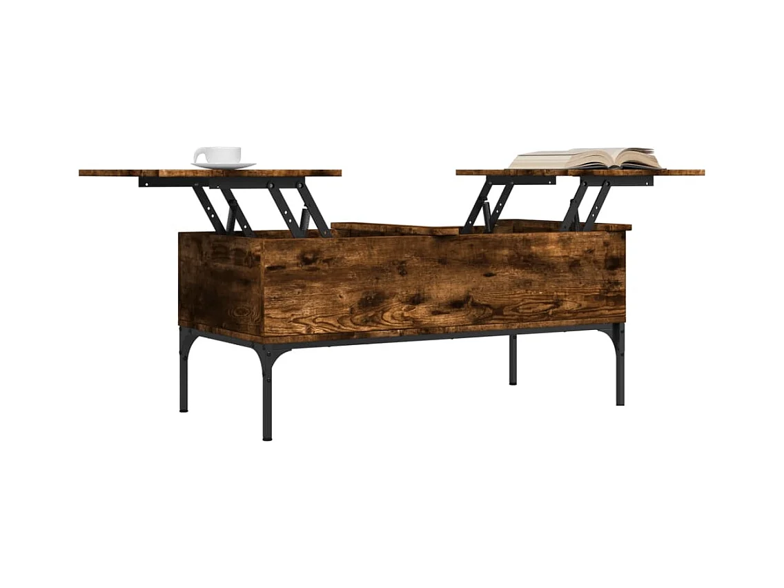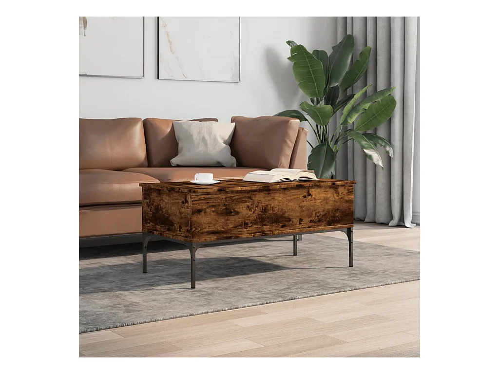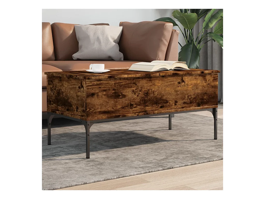 Gerookte eiken salontafel 100x50x45 cm bewerkt hout en metaal