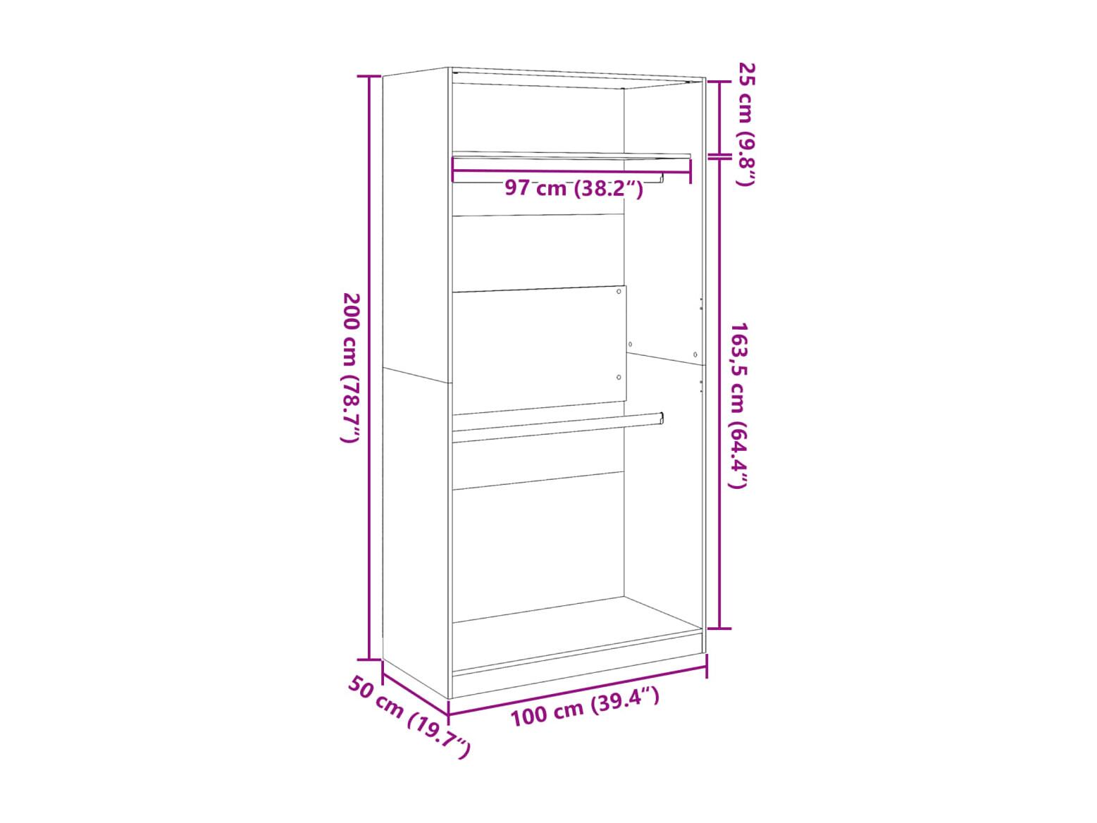 Gerookte eikenhouten kledingkast 100x50x200 cm bewerkt hout