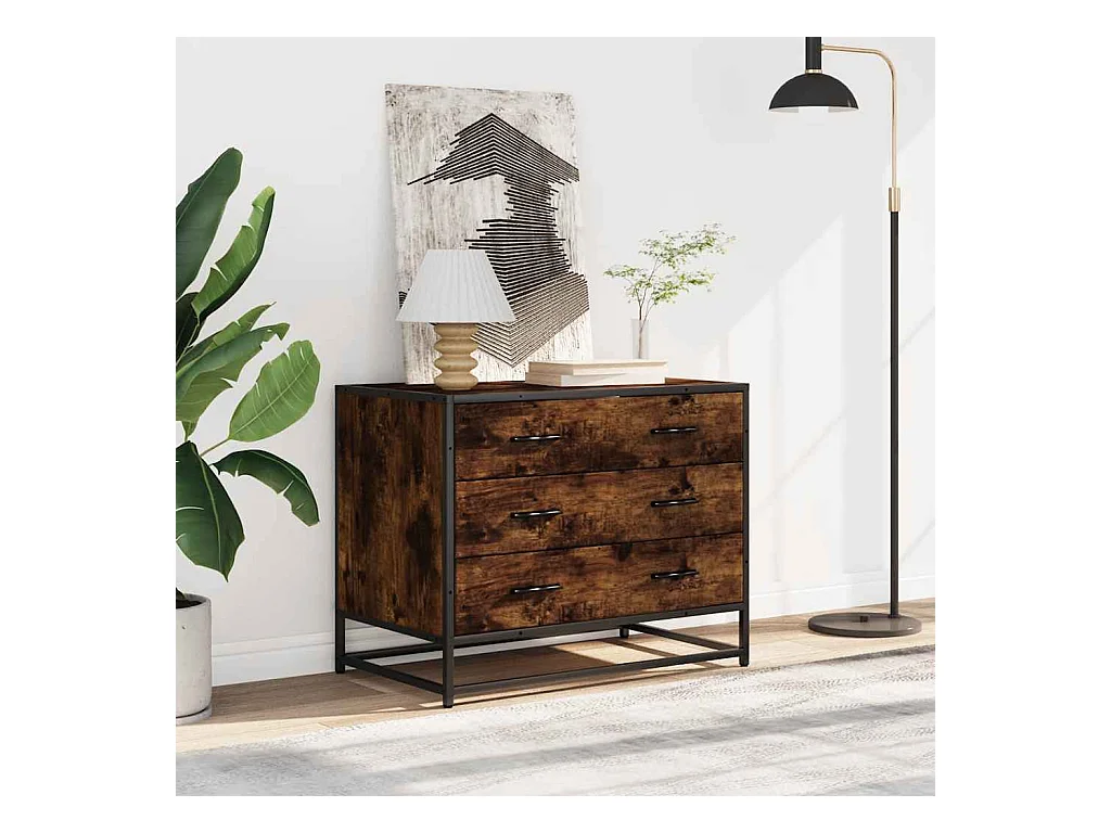 Gerookte eikenhouten ladekast 70x41x83,5 cm bewerkt hout