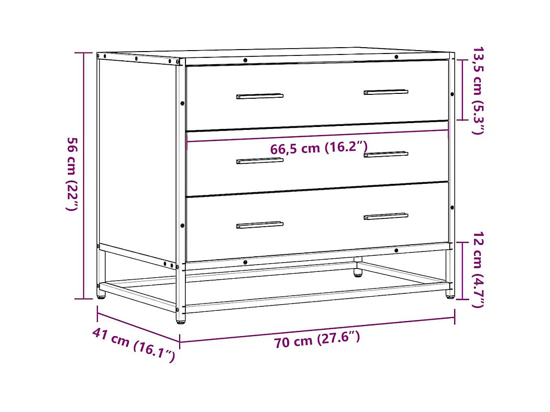 Sonoma eiken ladekast 70x41x56 cm bewerkt hout