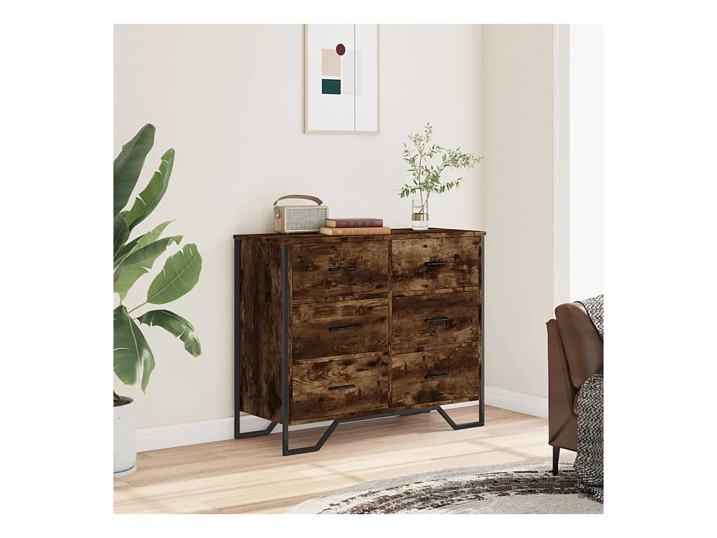 Gerookte eikenhouten ladekast 91x35,5x74,5 cm bewerkt hout