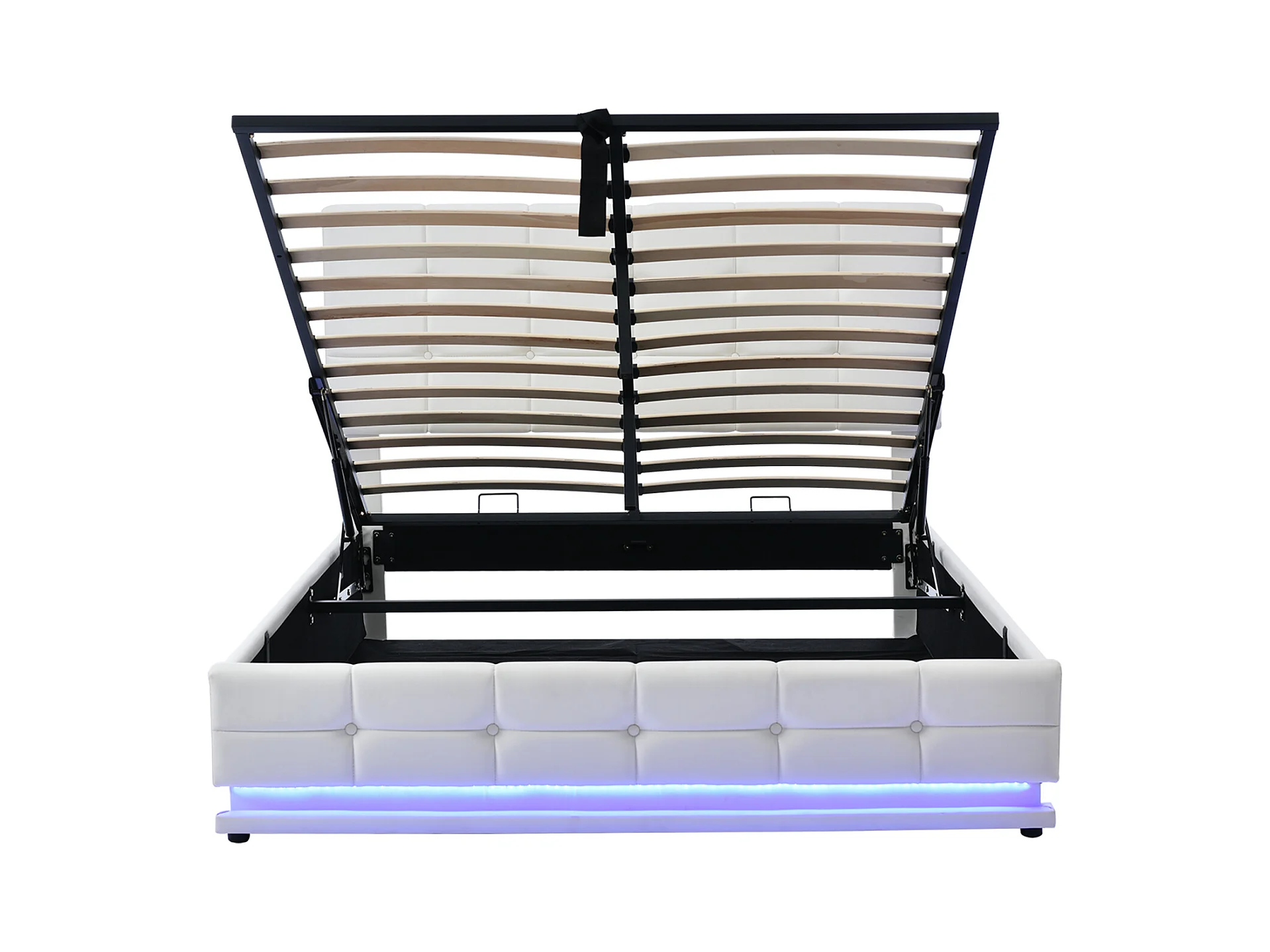 Volwassen bed 140x200 cm bed hydraulisch gestoffeerd bed opbergbed led verlichtingsbalk tweepersoonsbed pu wit
