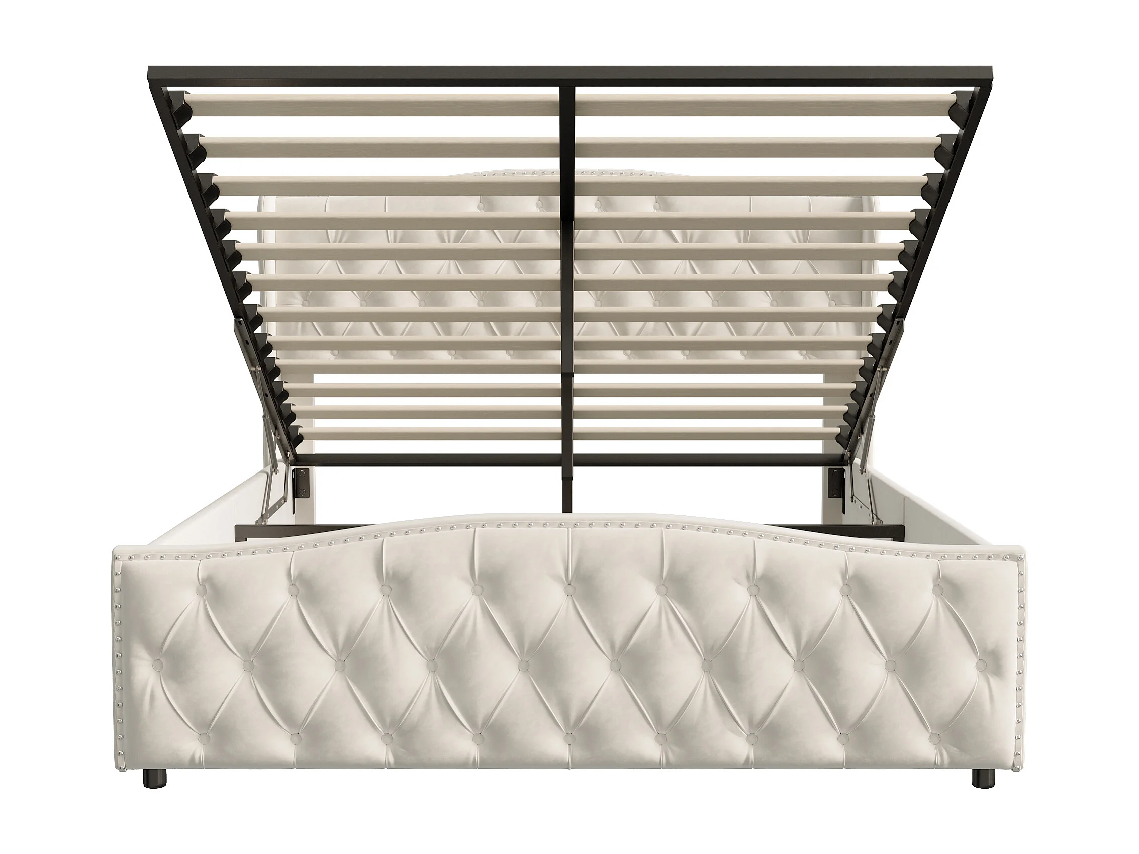 Gestoffeerd bed 140 x 200 cm, met opbergruimte, lattenbodem, fluweel, beige