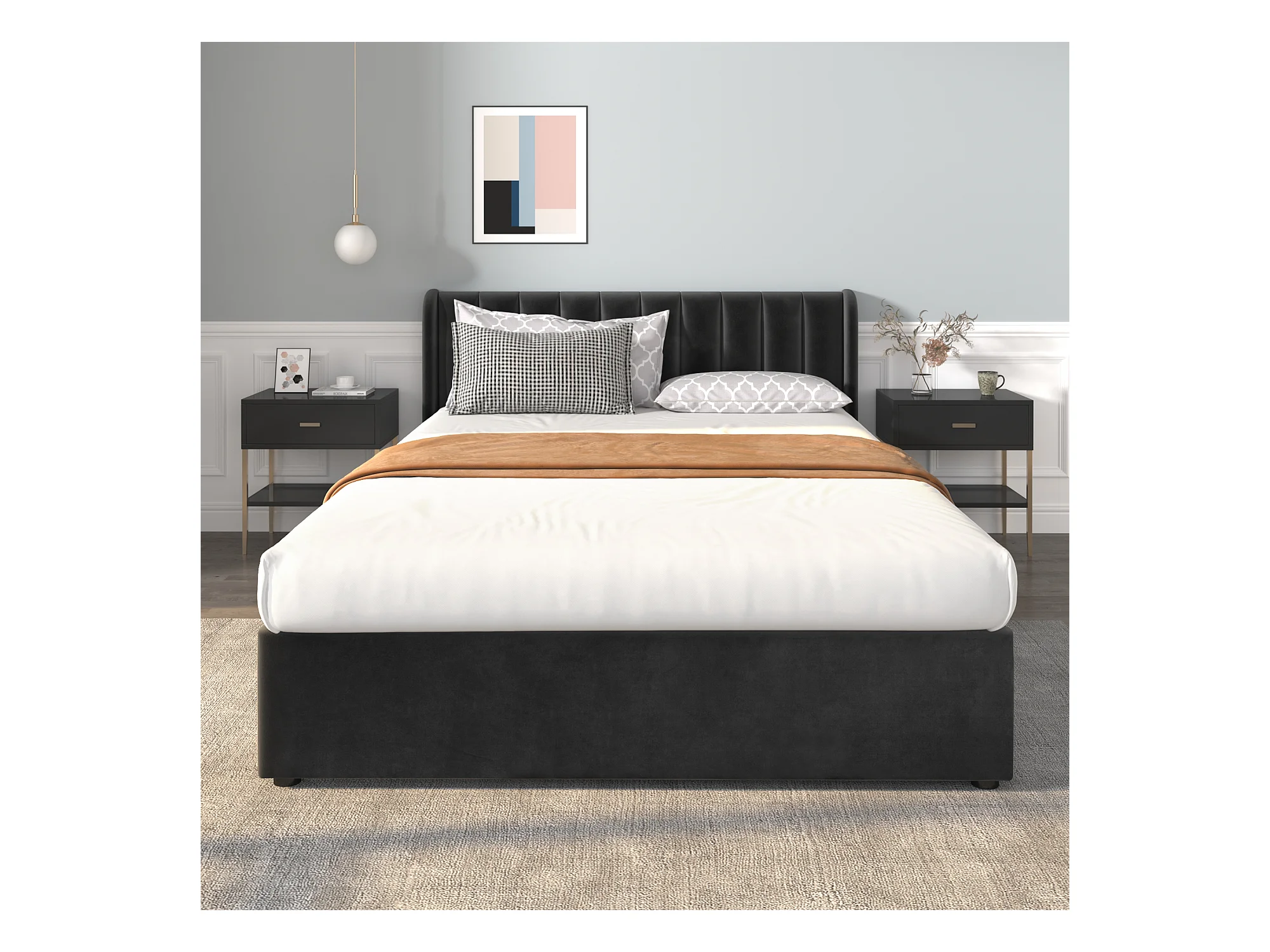 Tweepersoonsbed 140x200 cm - met 2 lades - in zwarte fluweel (zonder matras)