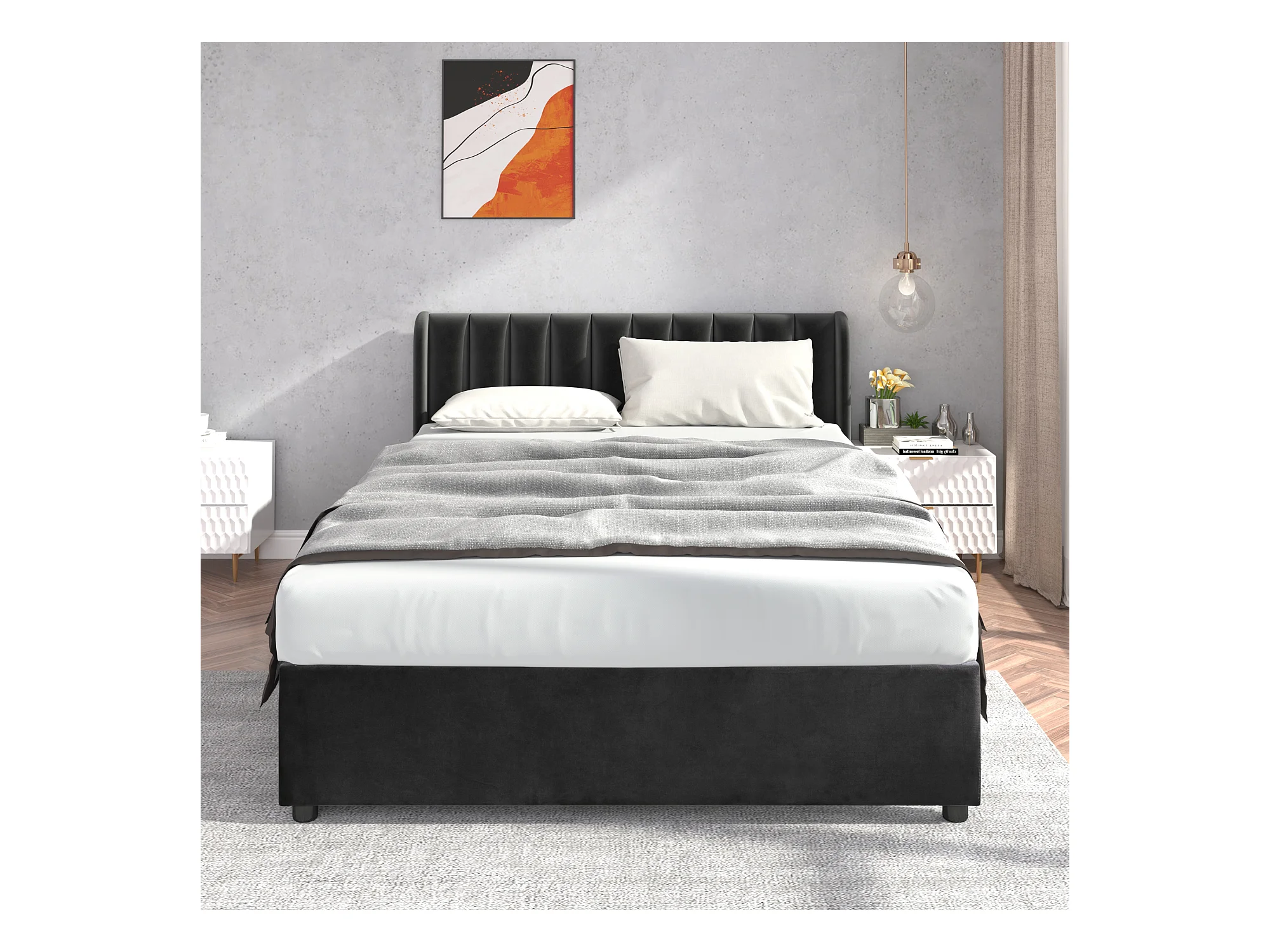 Hydraulisch bed met verstelbaar hoofdeinde, 140x200 cm, gestoffeerd bed met 2 opberglades, metalen frame en houten onderstel, zwart fluweel (zonder matras)