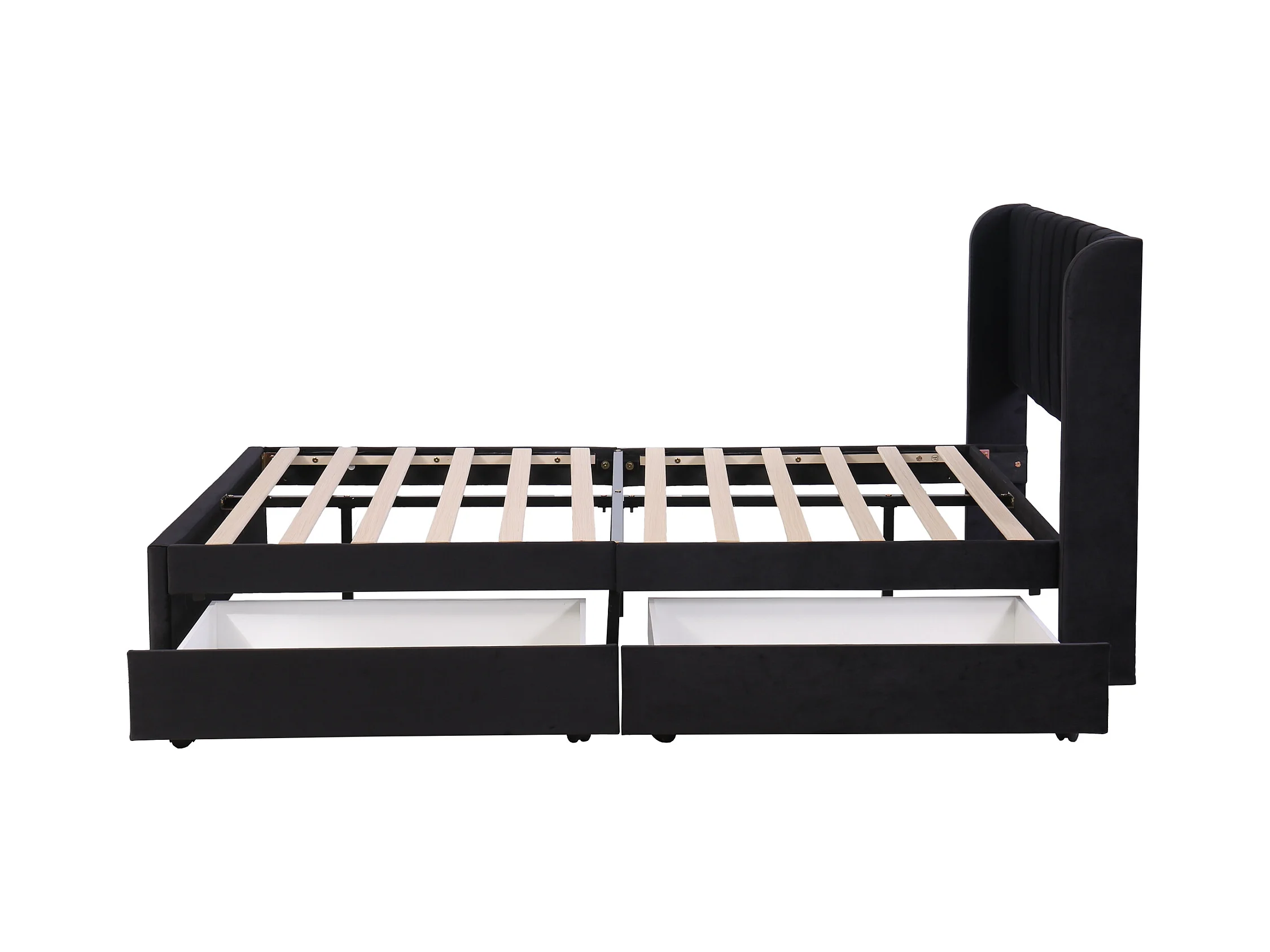 Volwassen bed houten lattenbodem bed 140x200 cm bed gestoffeerd bed 2 laden tweepersoonsbed zwart fluweel