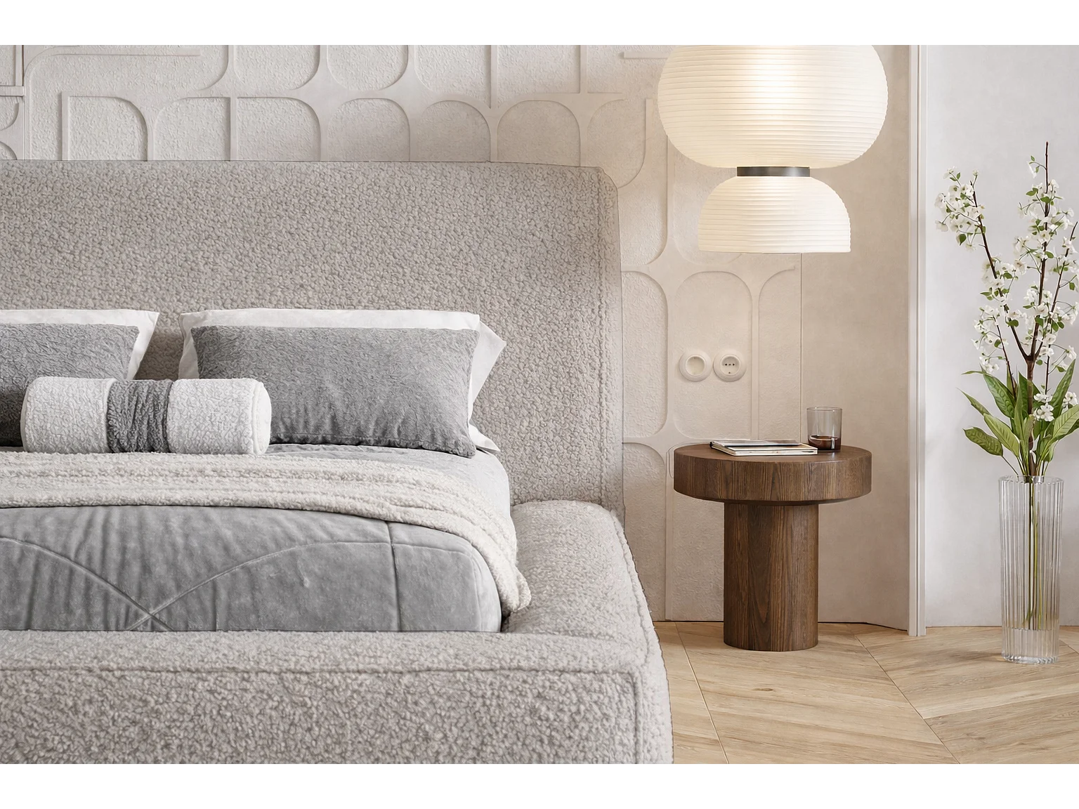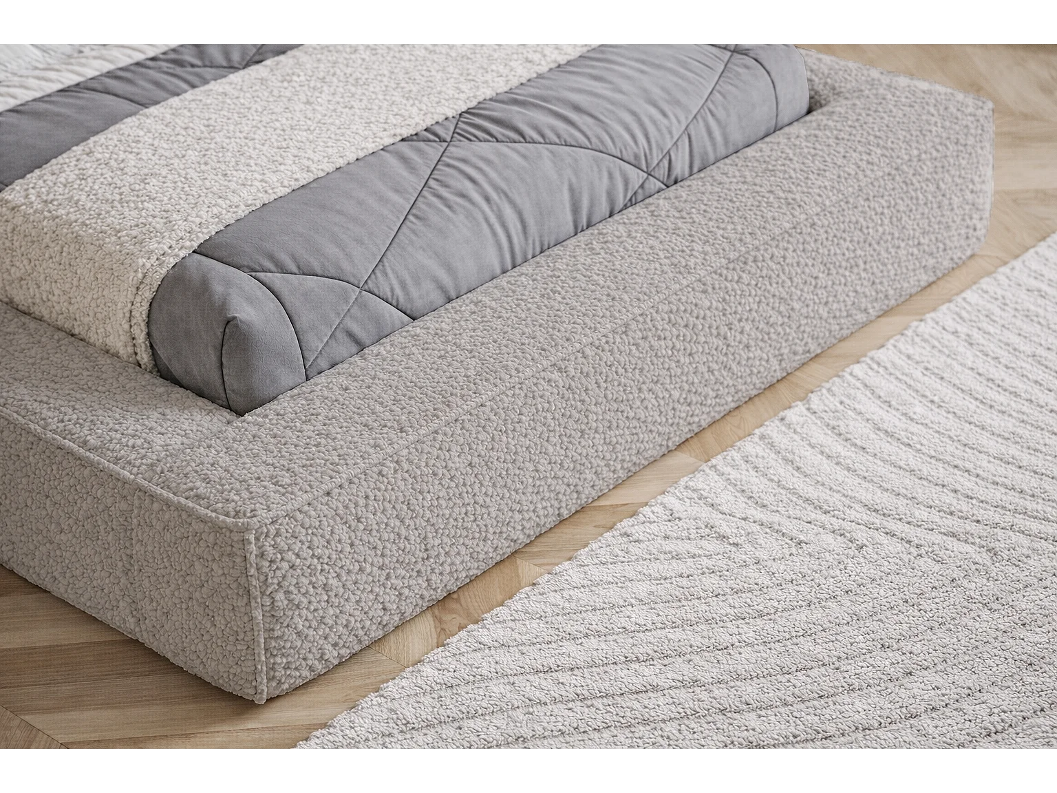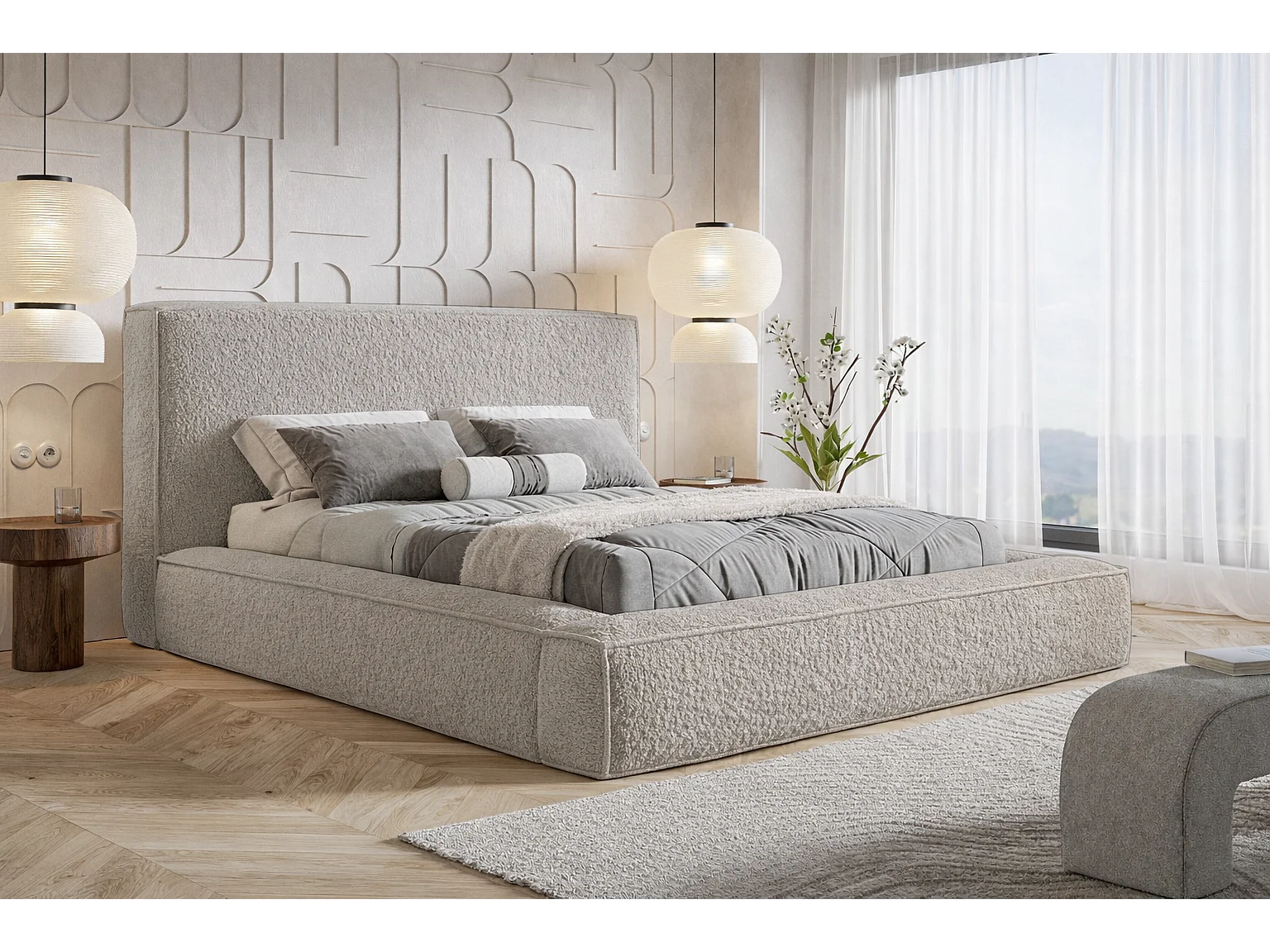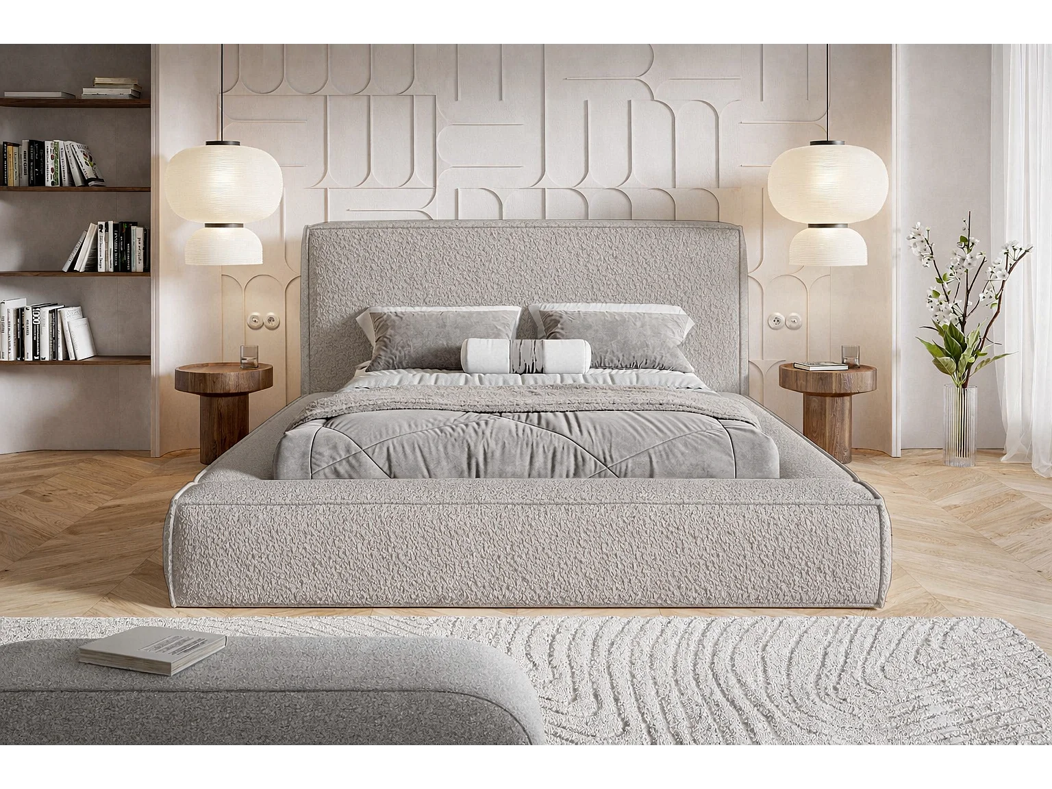 Gestoffeerd bed 140x200 Karano - bouclé, bed met opbergruimte, metalen lattenbodem, Lichtgrijs (Catch Me 24)