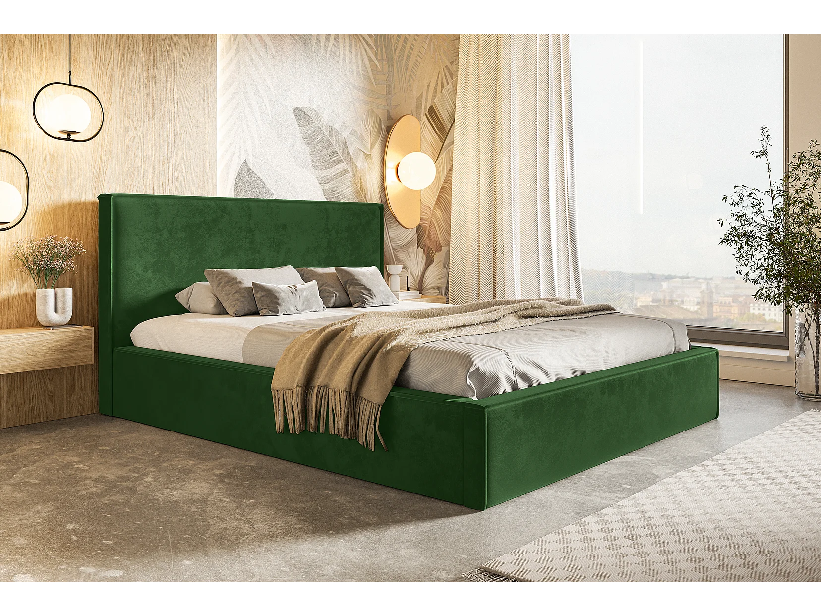 Gestoffeerd bed 140x200 Kyoto - tweepersoonsbed met opbergruimte - metalen lattenbodem, fluwelen Groen (Amor Velvet 4311)
